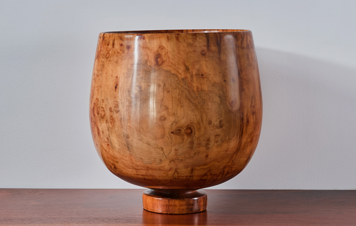 Moulthrop passed his love of woodworking down to his son, Philip, a Navy veteran and lawyer turned woodworker, and Philip’s son, Matt, who turned his first bowl at seven years old. His legacy continues on in his lineage and in his impact on the modern art world, with works featured in prestigious collections including those of Metropolitan Museum of Art, MoMA, Renwick Gallery, White House Collection of American Crafts, and MAD in NYC.