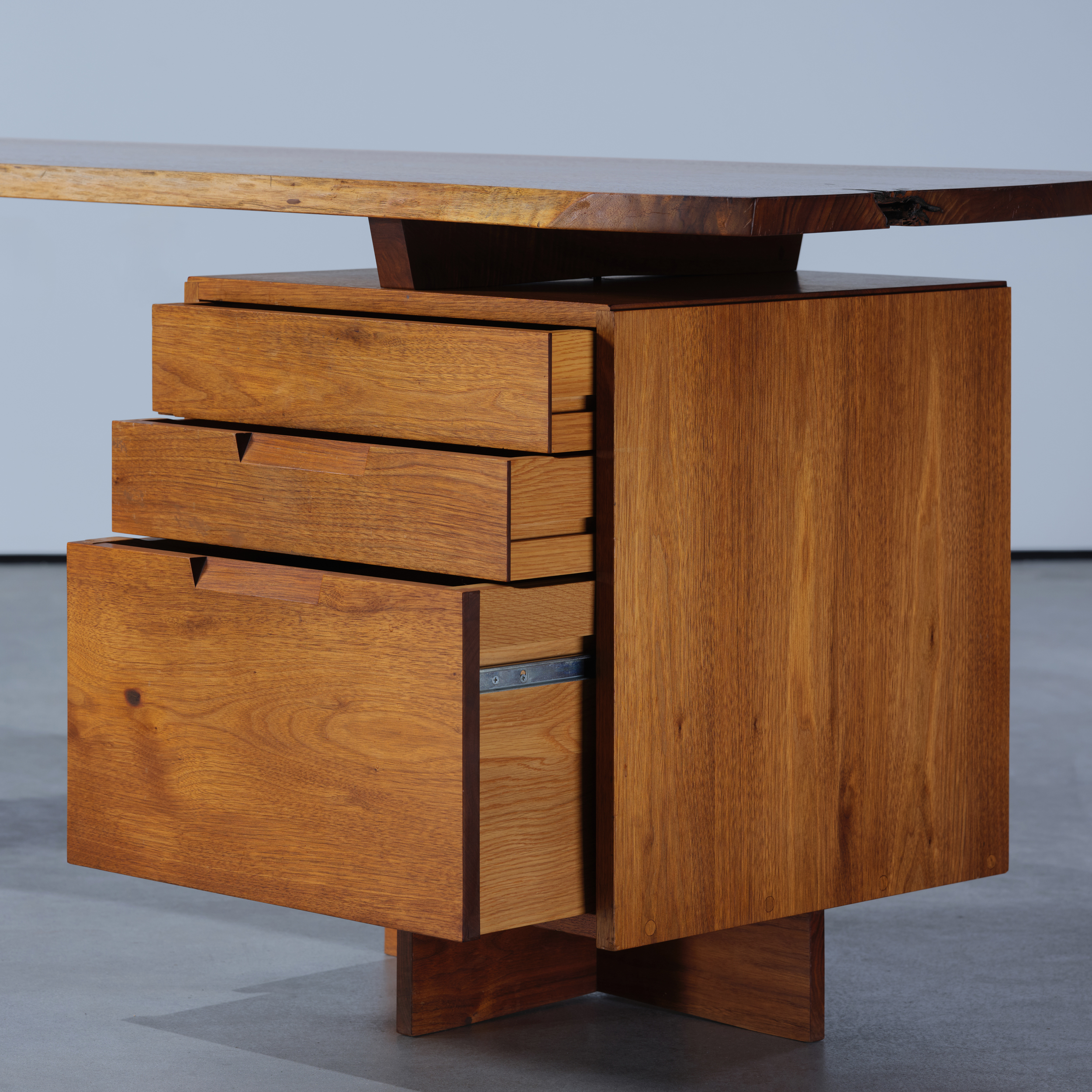 For collectors, authenticity is paramount. Every piece created under Mira’s direction at the Nakashima Studio is meticulously crafted by a team of artisans, many of whom trained directly under George or Mira herself. These works are individually signed, dated, and archived, ensuring their provenance and place within the studio’s lineage.