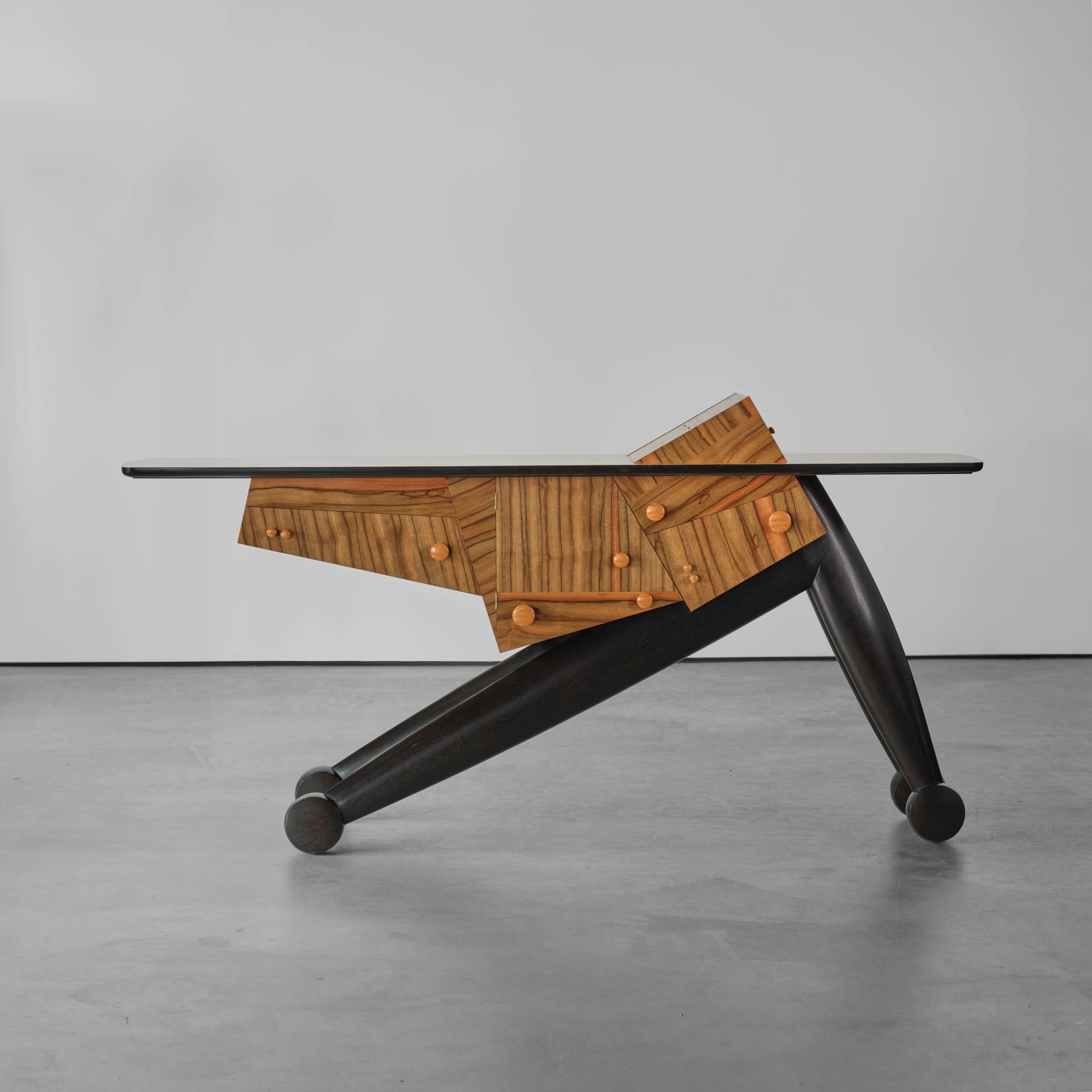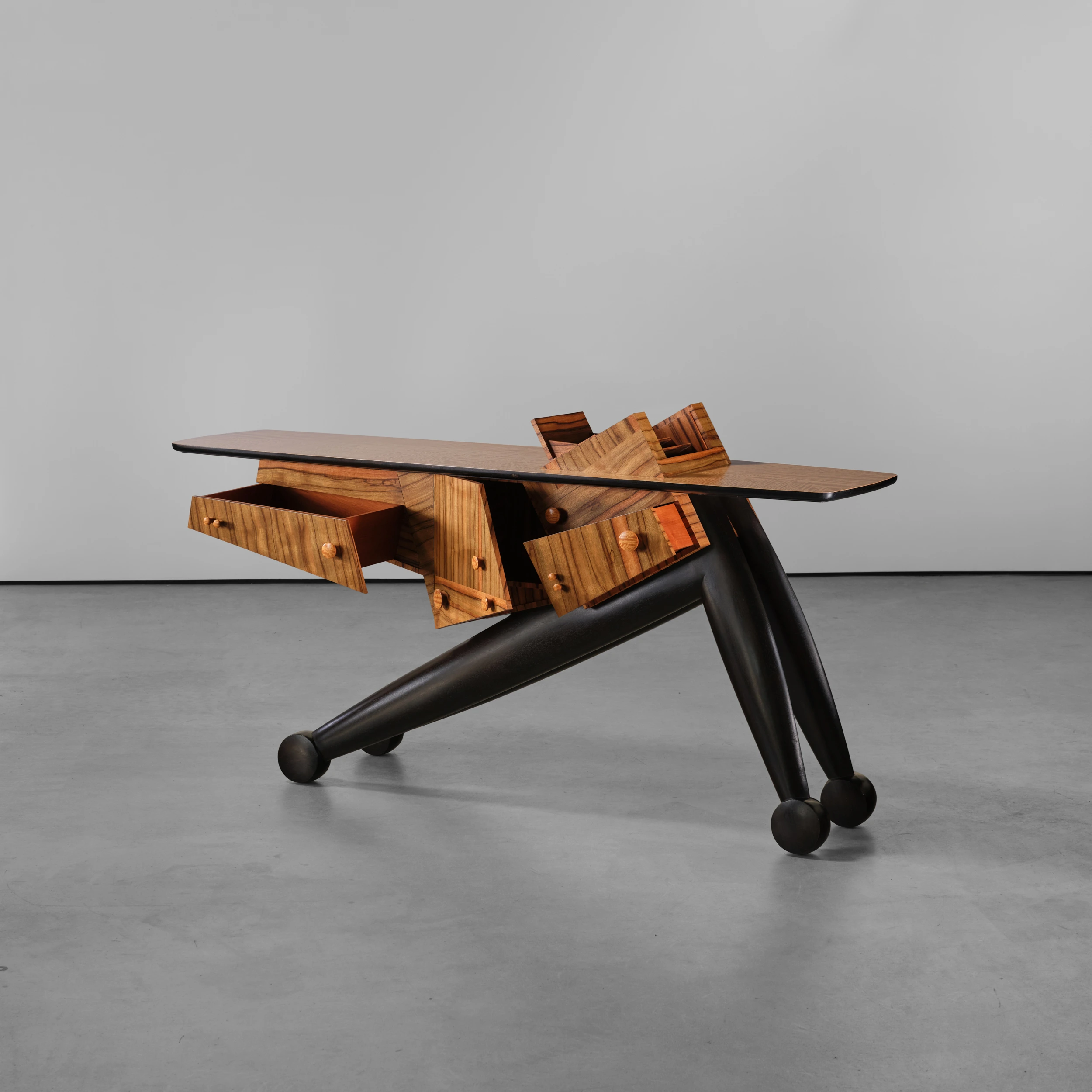 A postmodern console by American studio craft master and educator Alphonse Mattia.