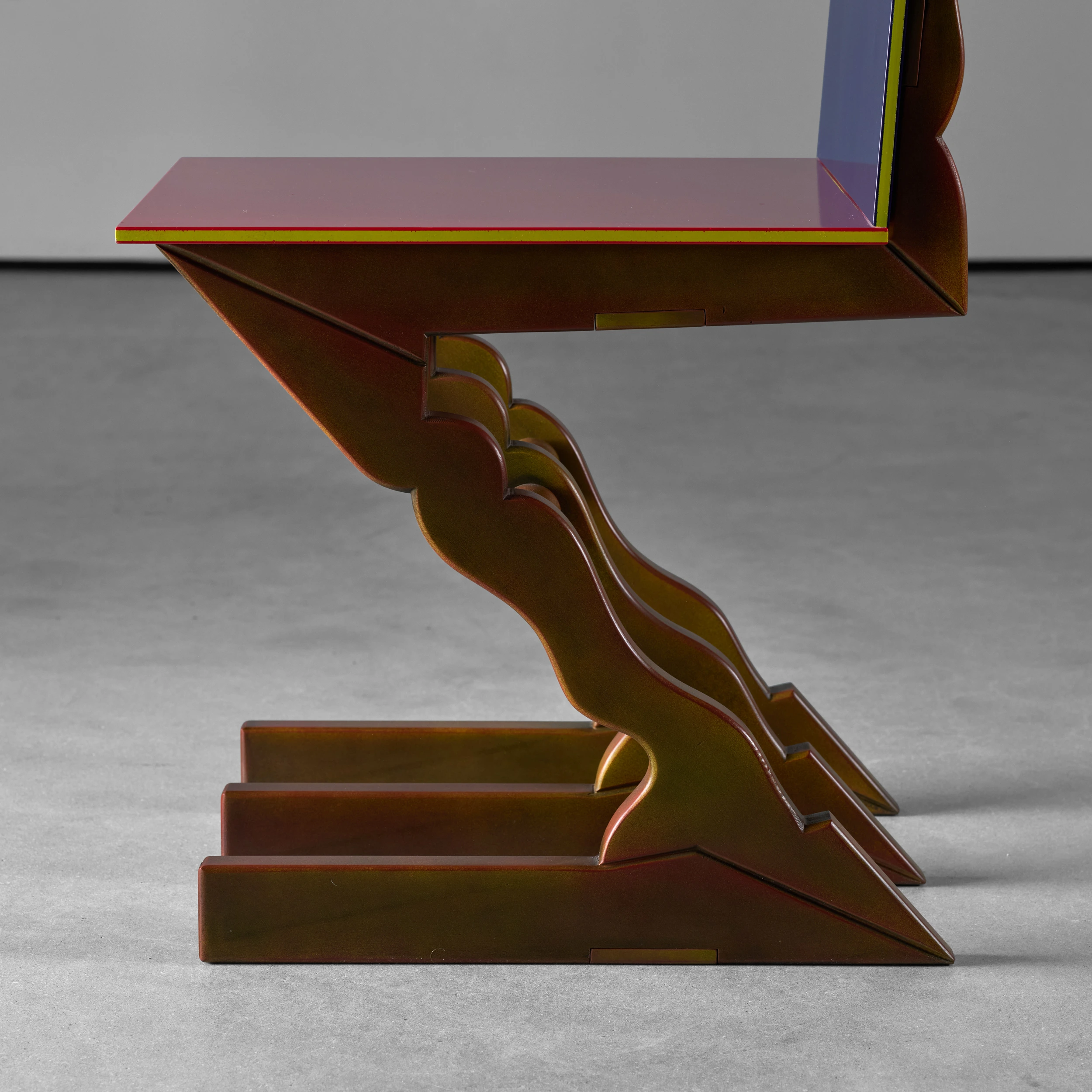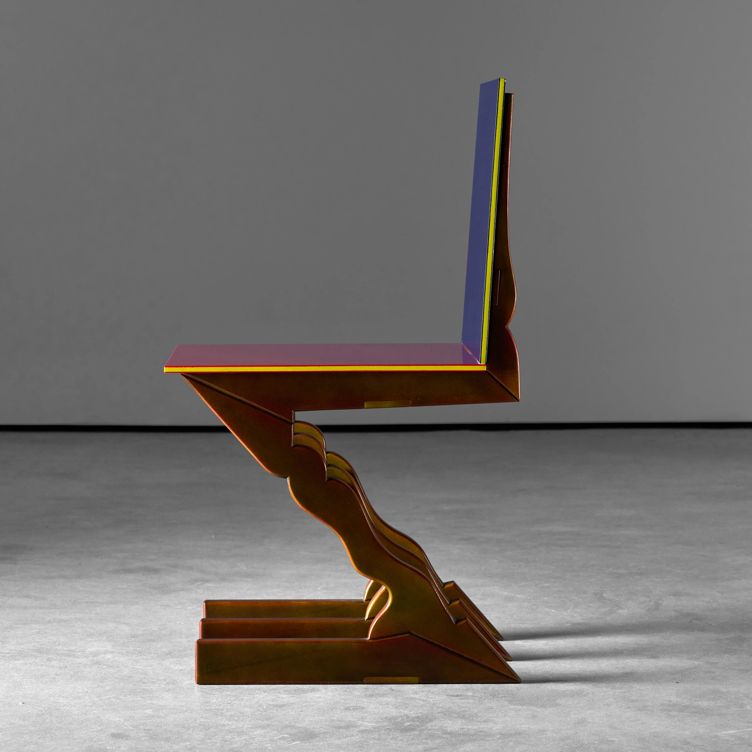 The chair is part of Knox Bennett’s “GR Series”, which is comprised of humorous riffs on Gerrit Rietveld’s iconic Z Chair design.