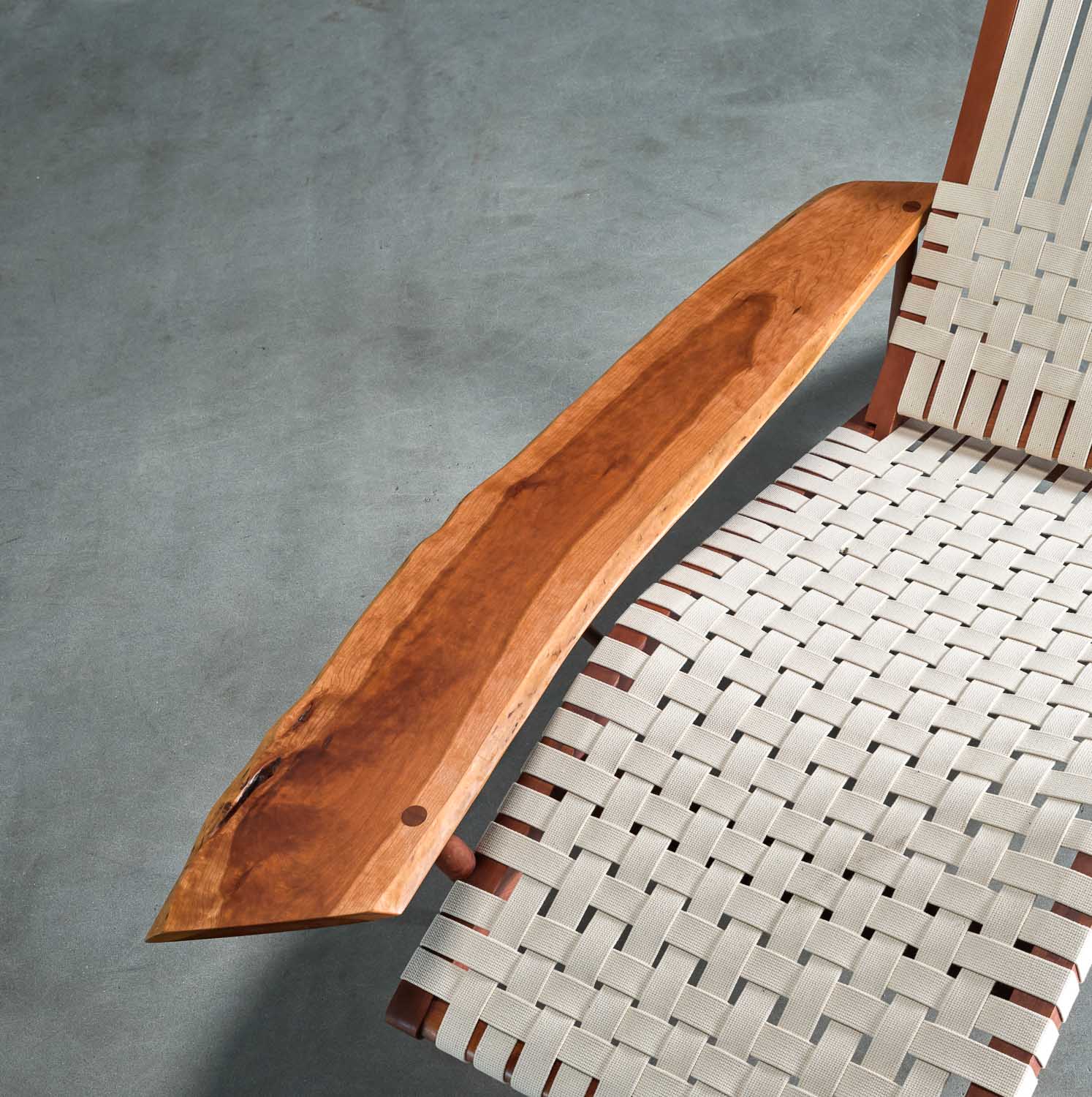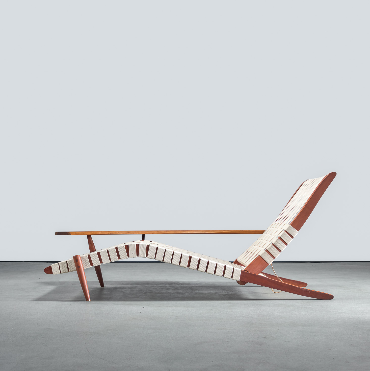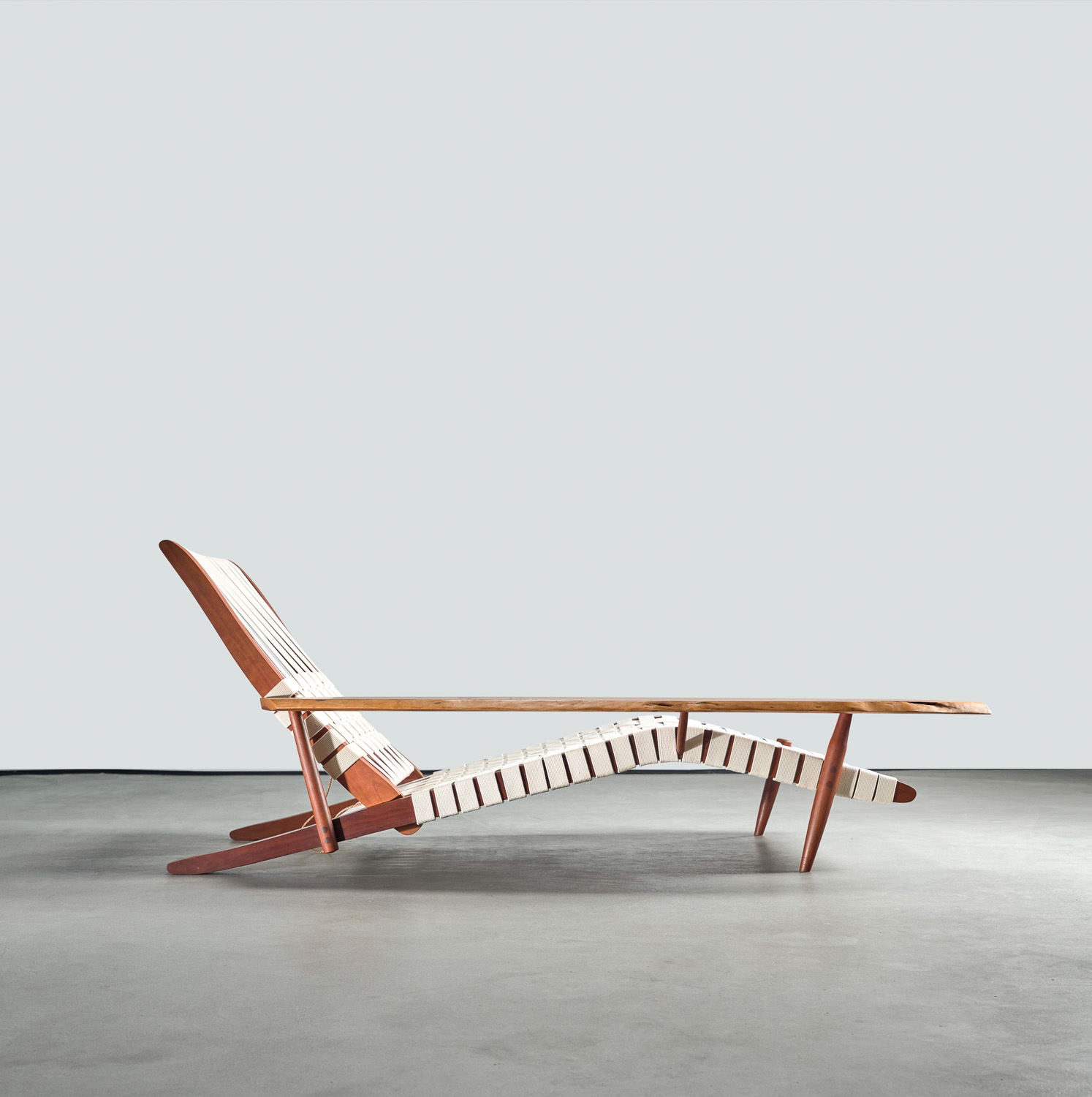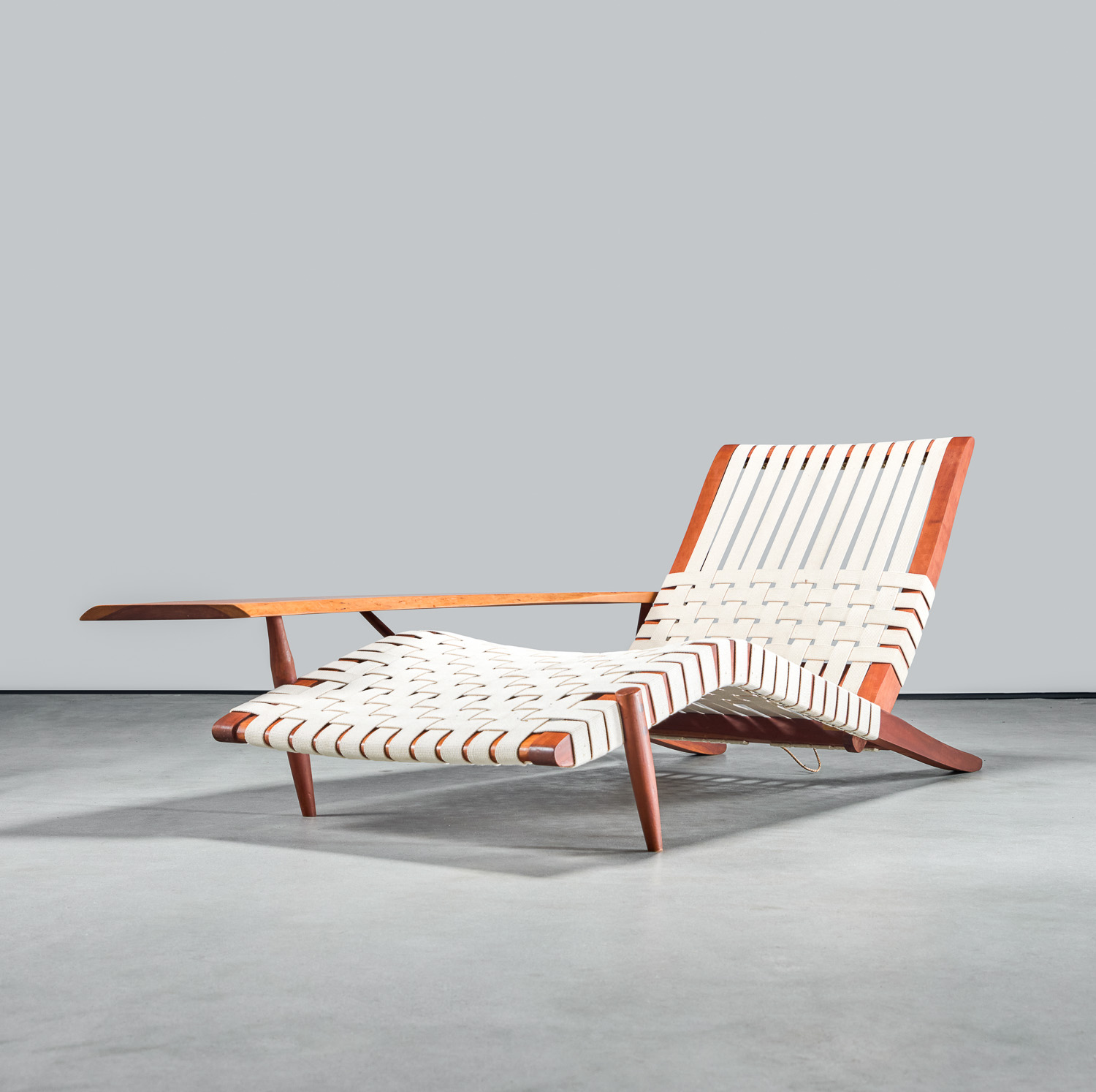 Originally designed in 1947, the Long Chair exemplifies the elegance and craftsmanship of Nakashima’s work. Featuring classic cotton webbing, this chair reflects the influential styles of renowned designers Antonin Raymond and Charlotte Perriand, making it a quintessential example of Nakashima’s iconic aesthetic.