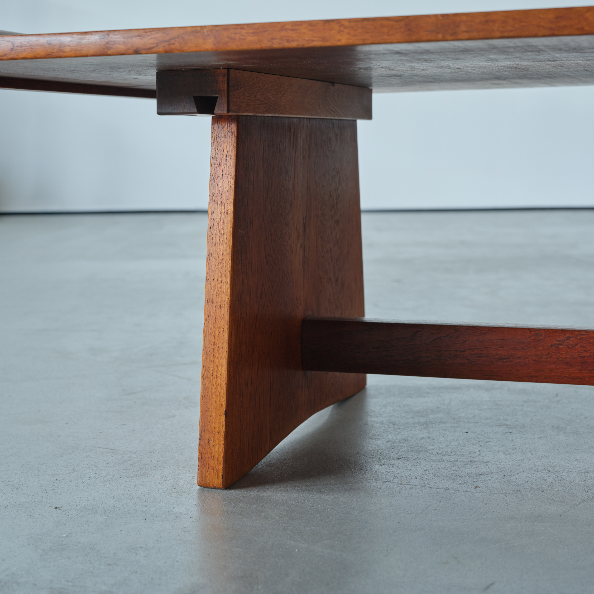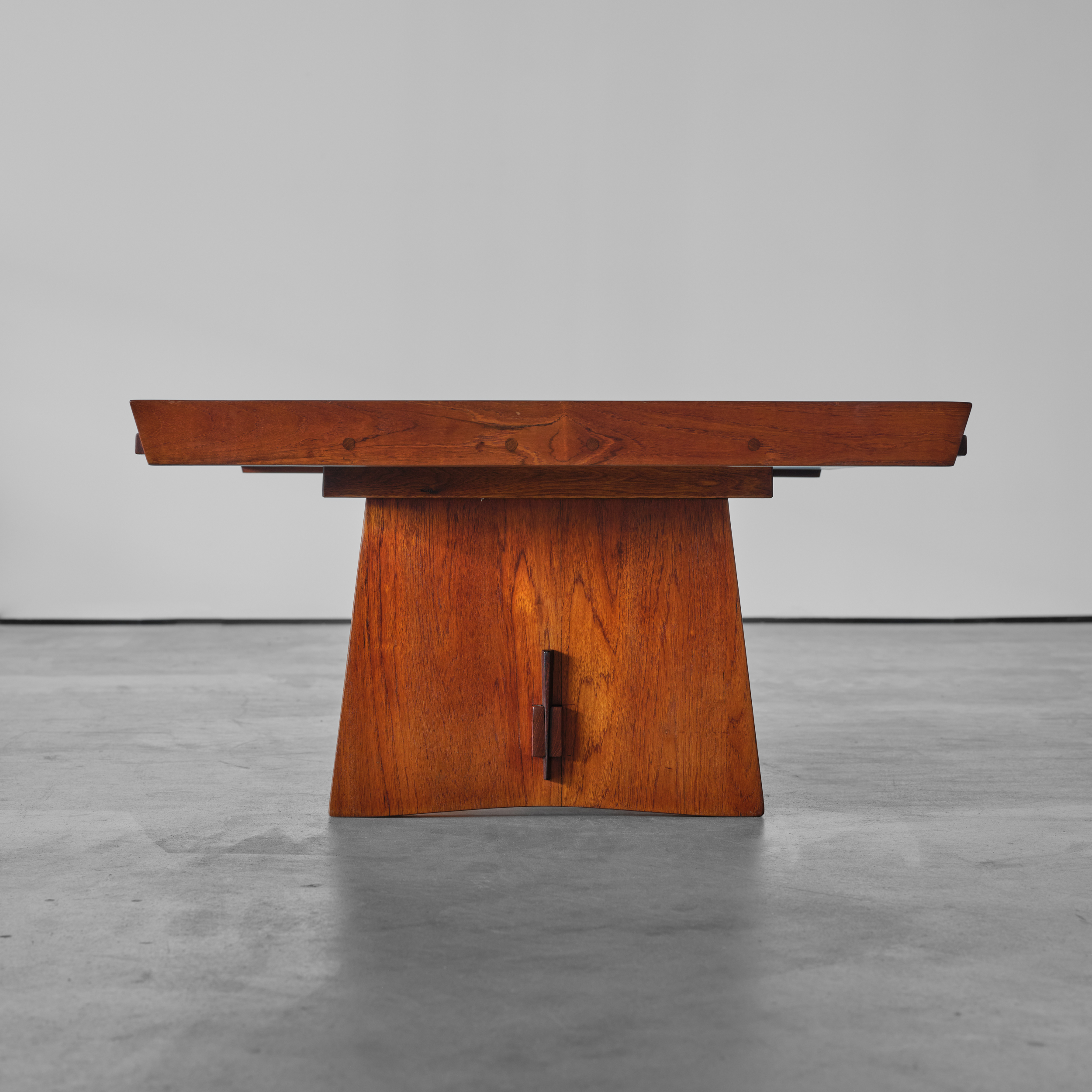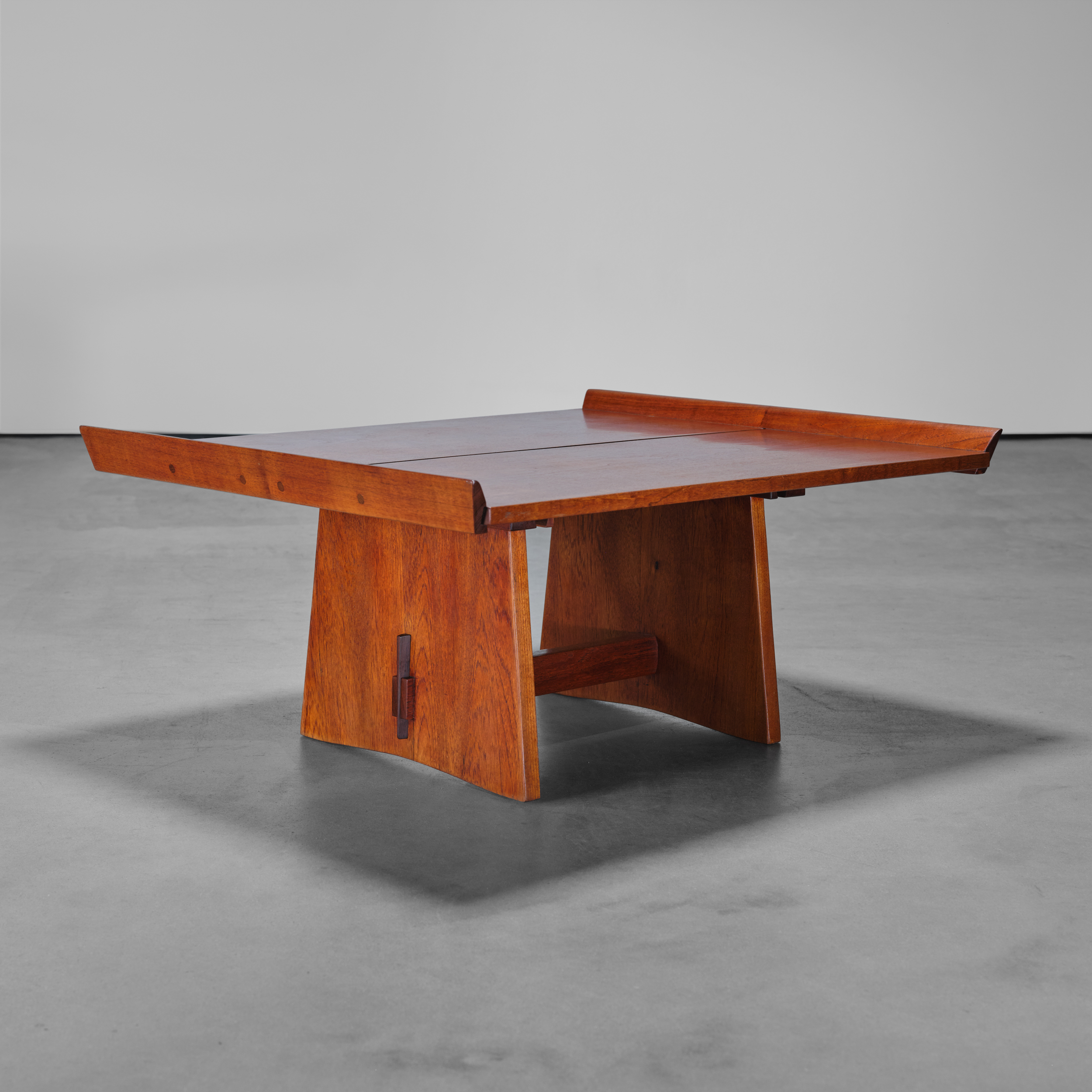 An example of George Nakashima’s Milk House Coffee Table, an early design originally conceived circa 1944 in a small milk house on the farm of Antonin Raymond in New Hope, PA where Nakashima and his family lived in 1943 and 1944 upon their release from a Japanese-American internment camp in Hunt, ID.
