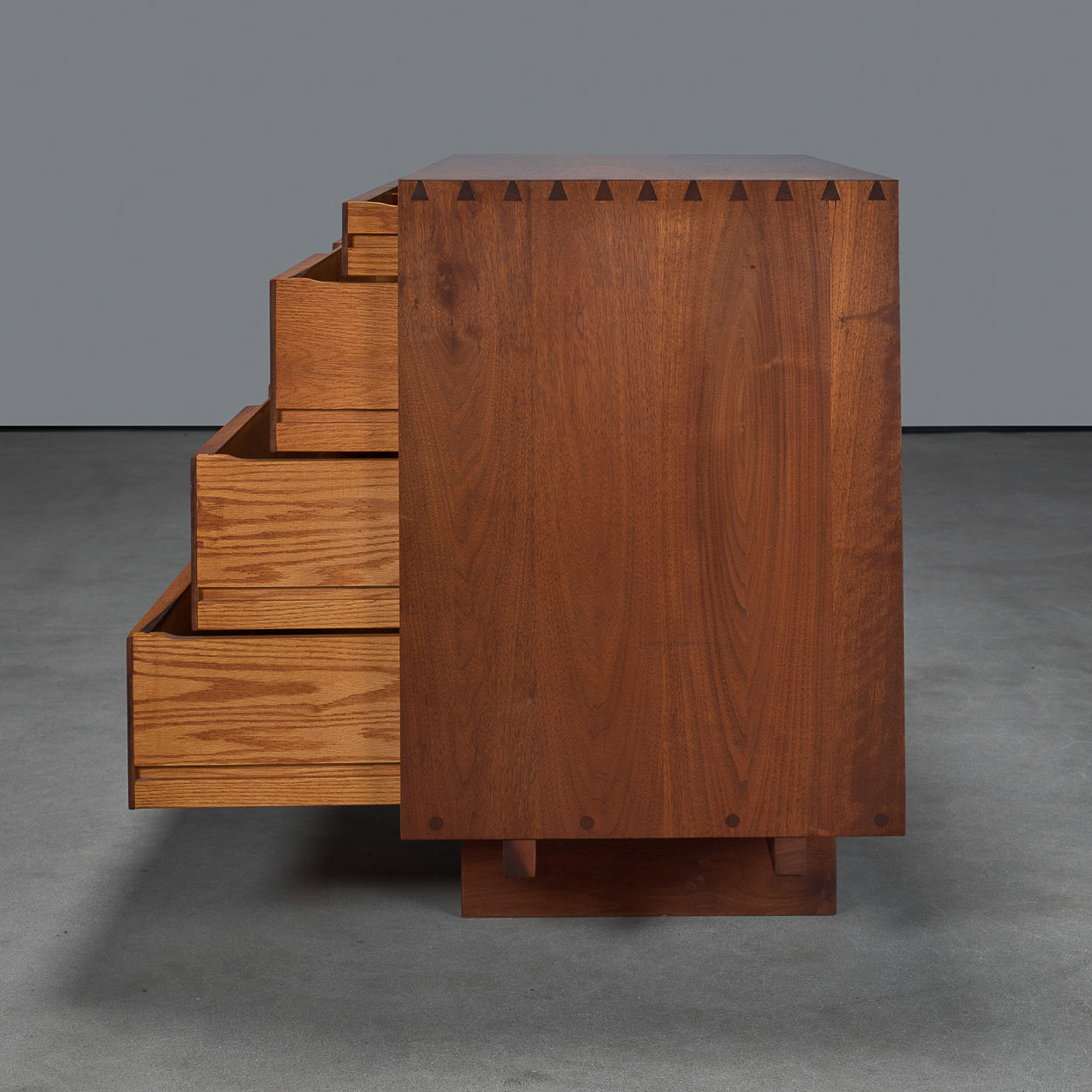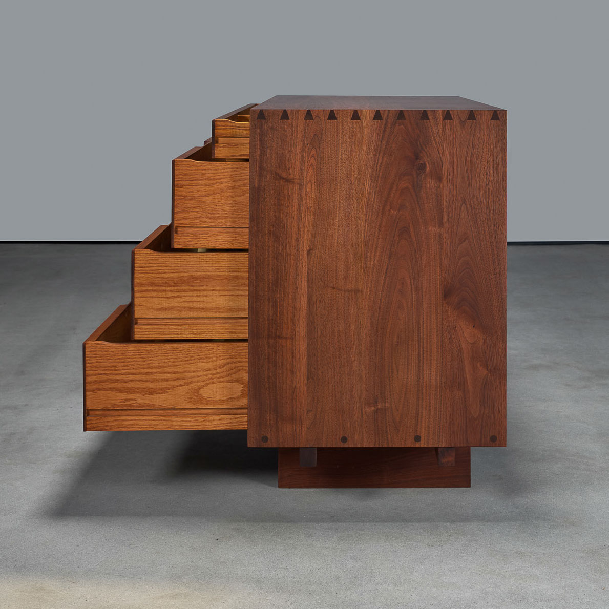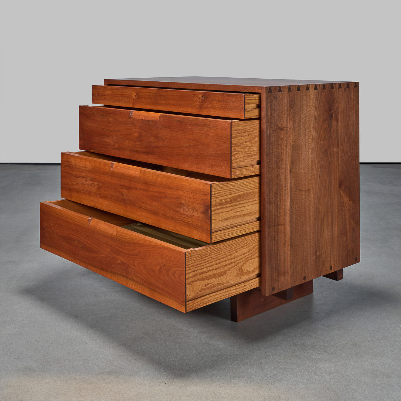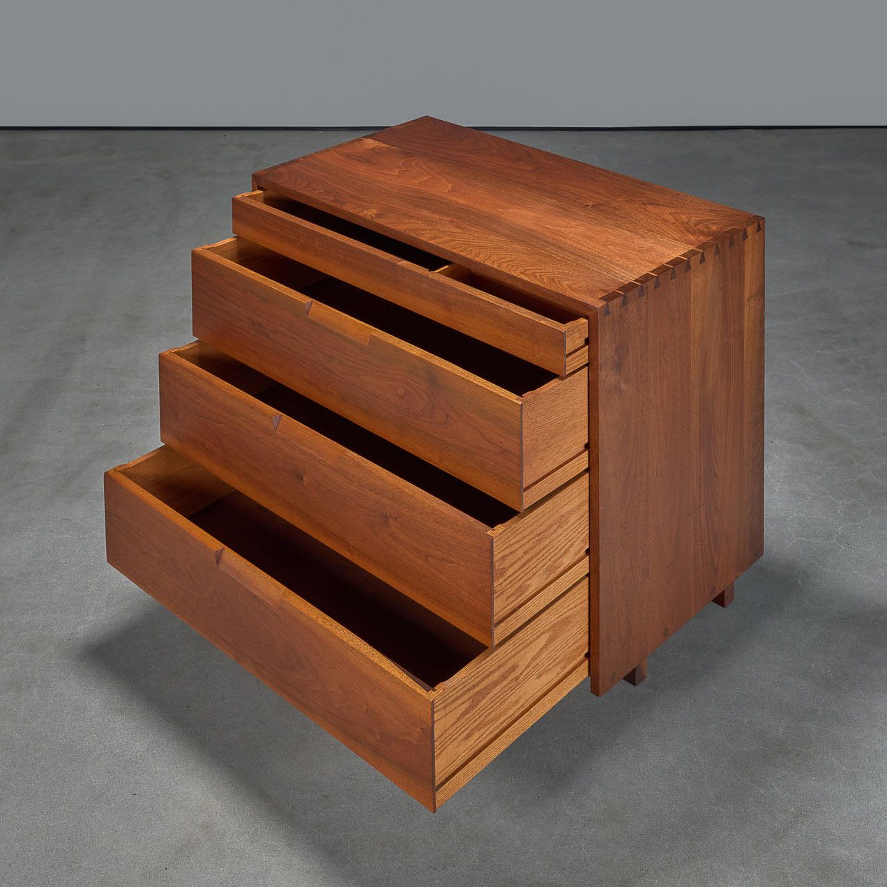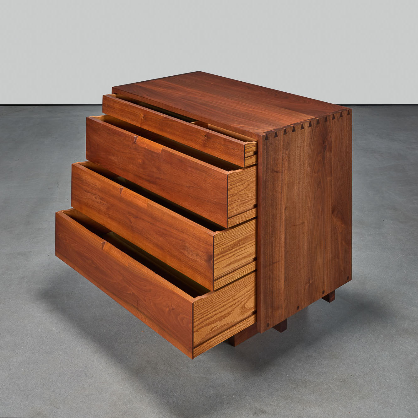 A large vertical storage piece in the grand tradition of Chinese cabinets or European armoires, chests of drawers, small bedside units, small chests of drawers for organizing small things, ladies’ dressing boxes, filing cabinets, wall-hung pieces – all these help to make life orderly” (‘The Soul of a Tree’, George Nakashima, 1981, p.136).