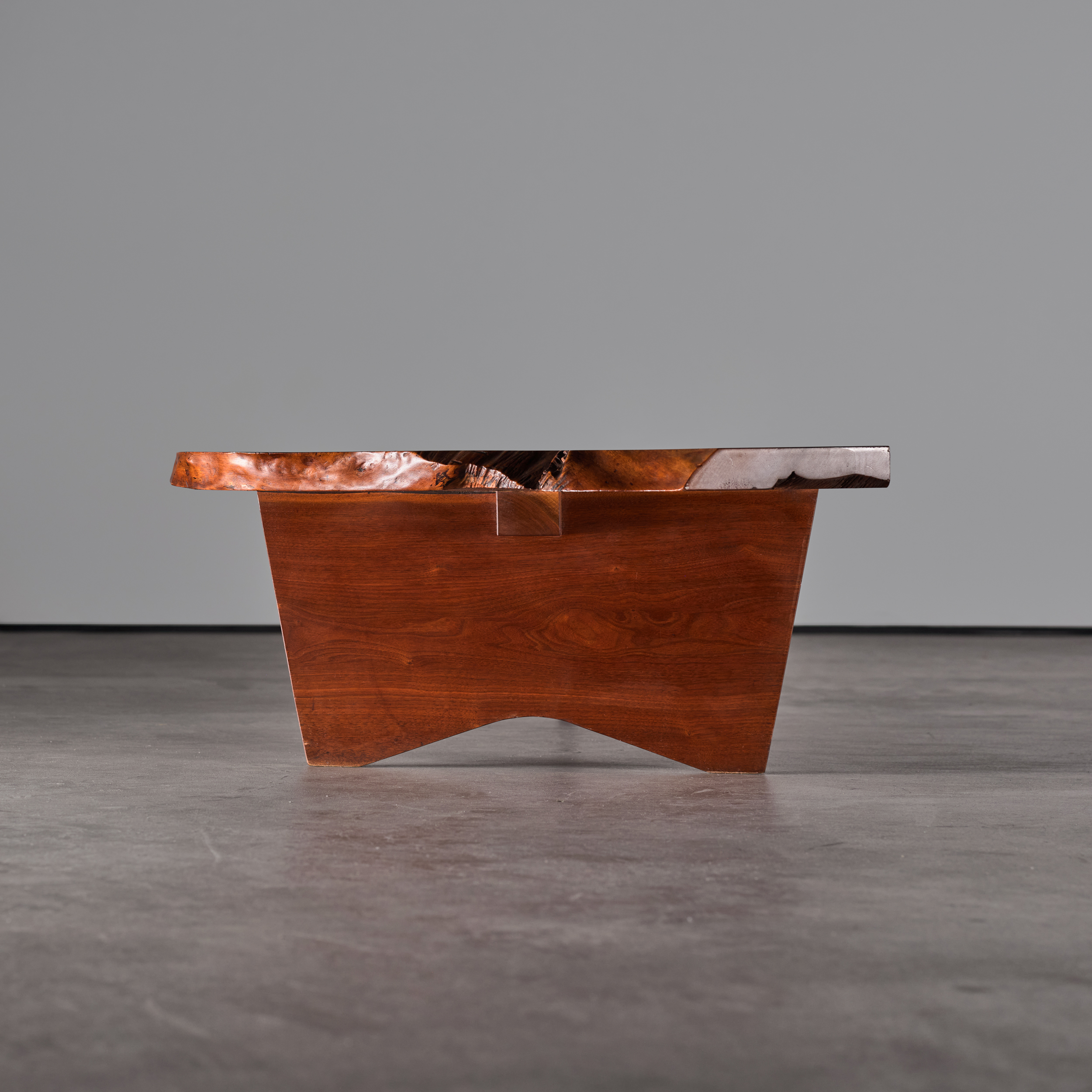 The Slab I Coffee Table is one of the earliest designs from the 1940s. Both the size and design of this piece were determined by the direction and thickness of the cut of wood. It emphasizes the extraordinary qualities of the natural world.
