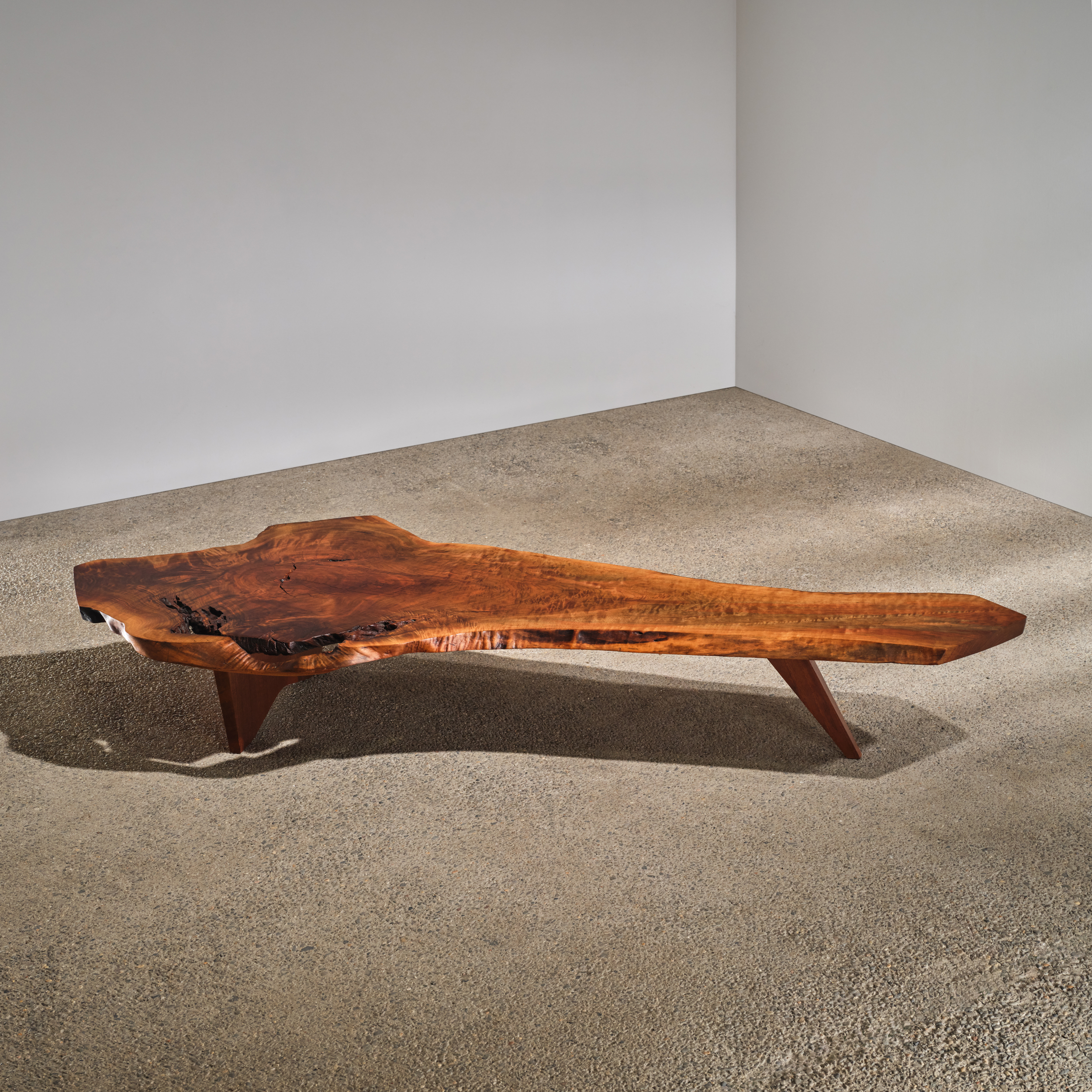 The Slab I Coffee Table is one of the earliest designs from the 1940s. Both the size and design of this piece were determined by the direction and thickness of the cut of wood. It emphasizes the extraordinary qualities of the natural world.