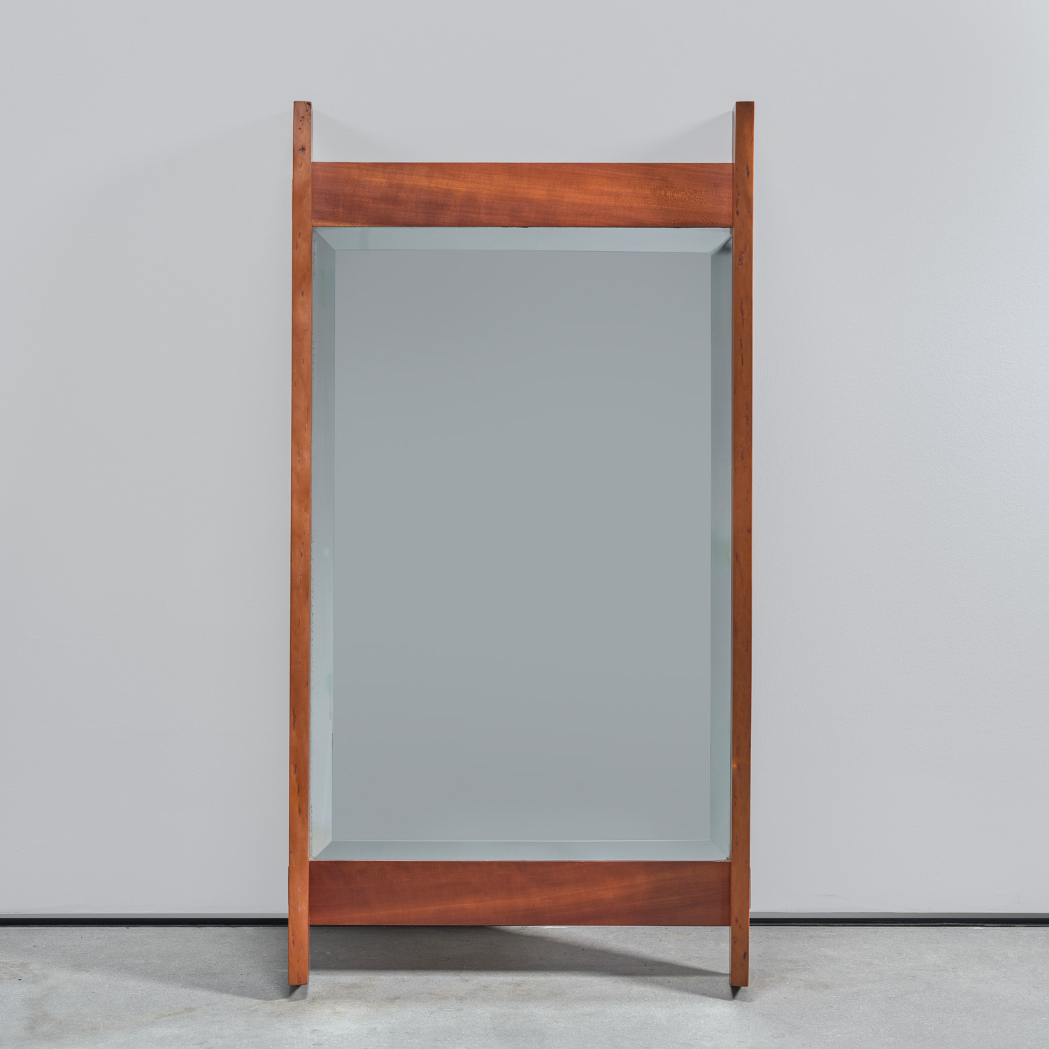 A wall mirror by George Nakashima – this particular mirror is crafted from cherry and dates to 1969-70. Reminiscent of traditional Japanese architectural elements and structures, the mirror’s frame showcases Nakashima’s signature visible joinery and includes four wedged mortise and tenon joints.