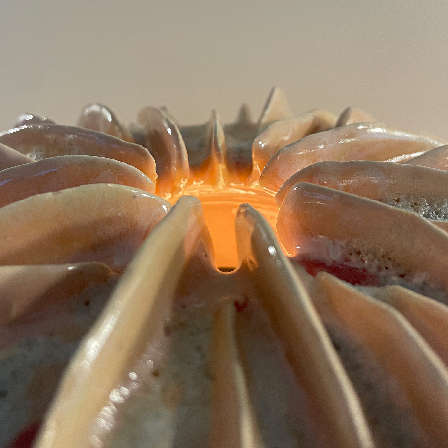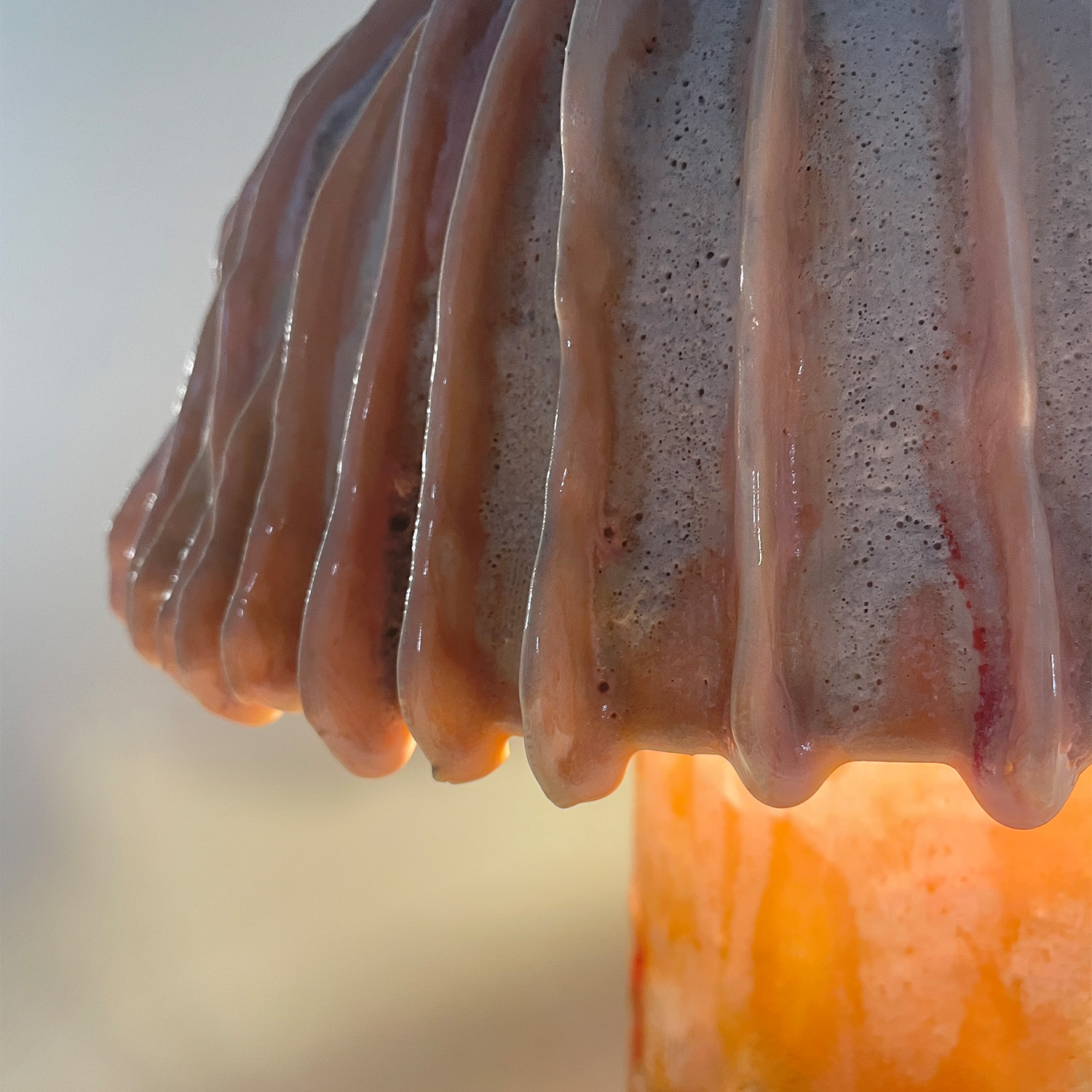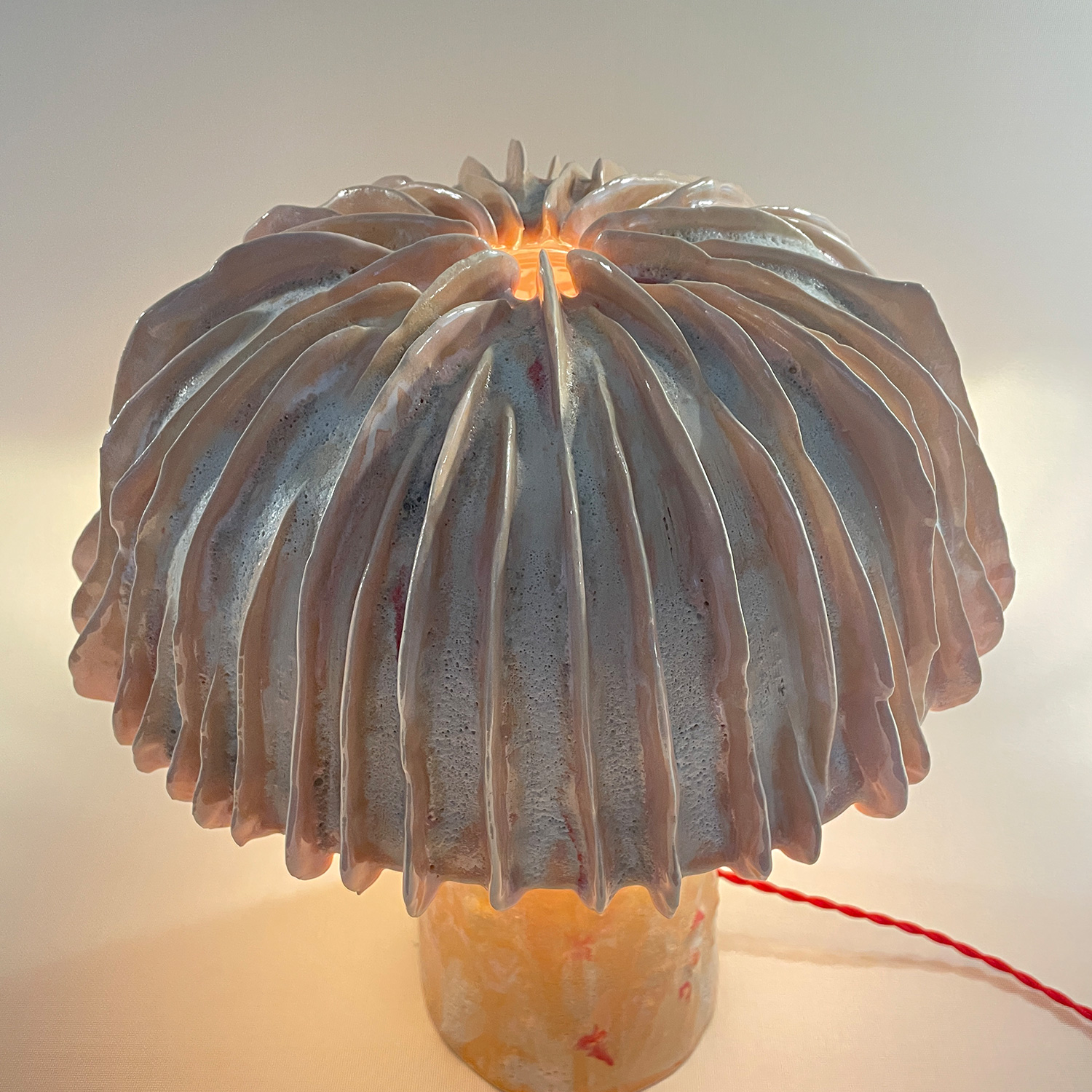 Based in Beirut, Zein Daouk is a multidisciplinary architect with an obsession for creating & a passion for ceramics. Her work embraces the dialogue that links disciplines by highlighting the fluid narrative between function & sculpture. She explores form by working with the four Elements; flowing Water stretches shapes into the Earth, Air commits them to form & Fire becomes the founding act that brings them to life. A harmonious combination of biomorphic forms emerge & push the sculptural vocabulary until the form becomes something mysterious & new. These objects are playful and organic and come in joyous hues created by a time-consuming process of layering and firing multiple colors , but when encountered in person, it is their surprising fragility that stands out. Formed from a combination of hand building, slab work, coiling and wheel throwing, each one turns out, like the fungi they are based on, to be as light as air. At the essence of her craft lies an insatiable curiosity to learn.