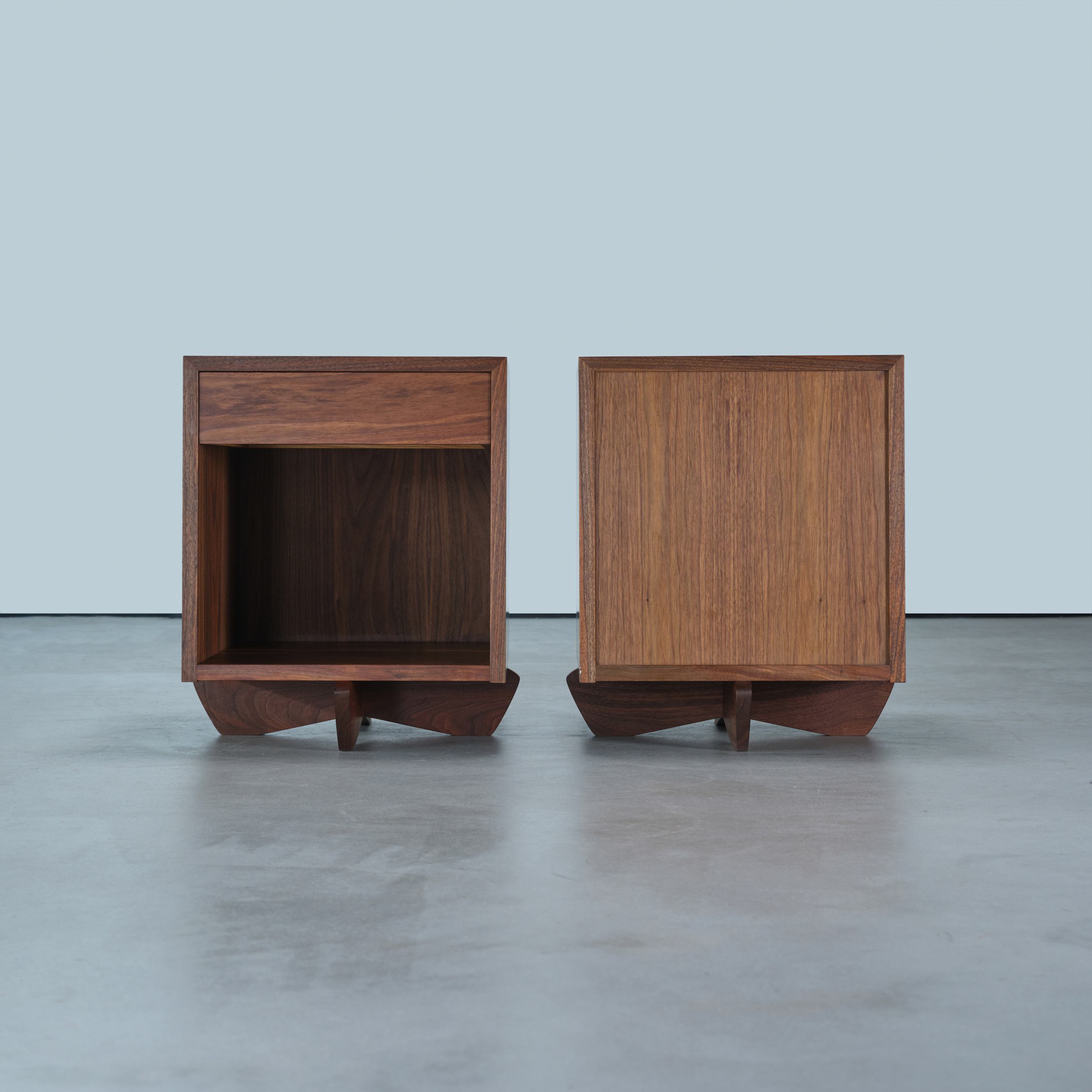 A pair of Special Swett Nightstands with a “Kornblut” base by Mira Nakashima.