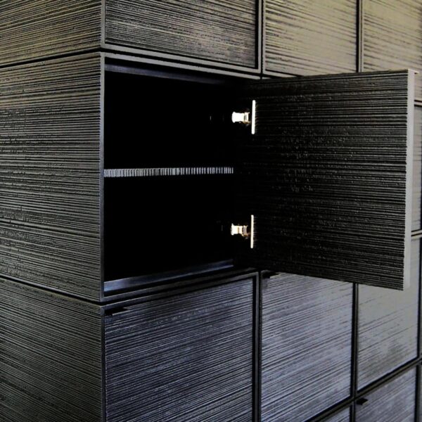 Hand-tooled wood to create a geometrically inspired piece that is minimal, emotional and refined. The work is guided by a purity in form, repetition, structure and in the respect for use of materials.