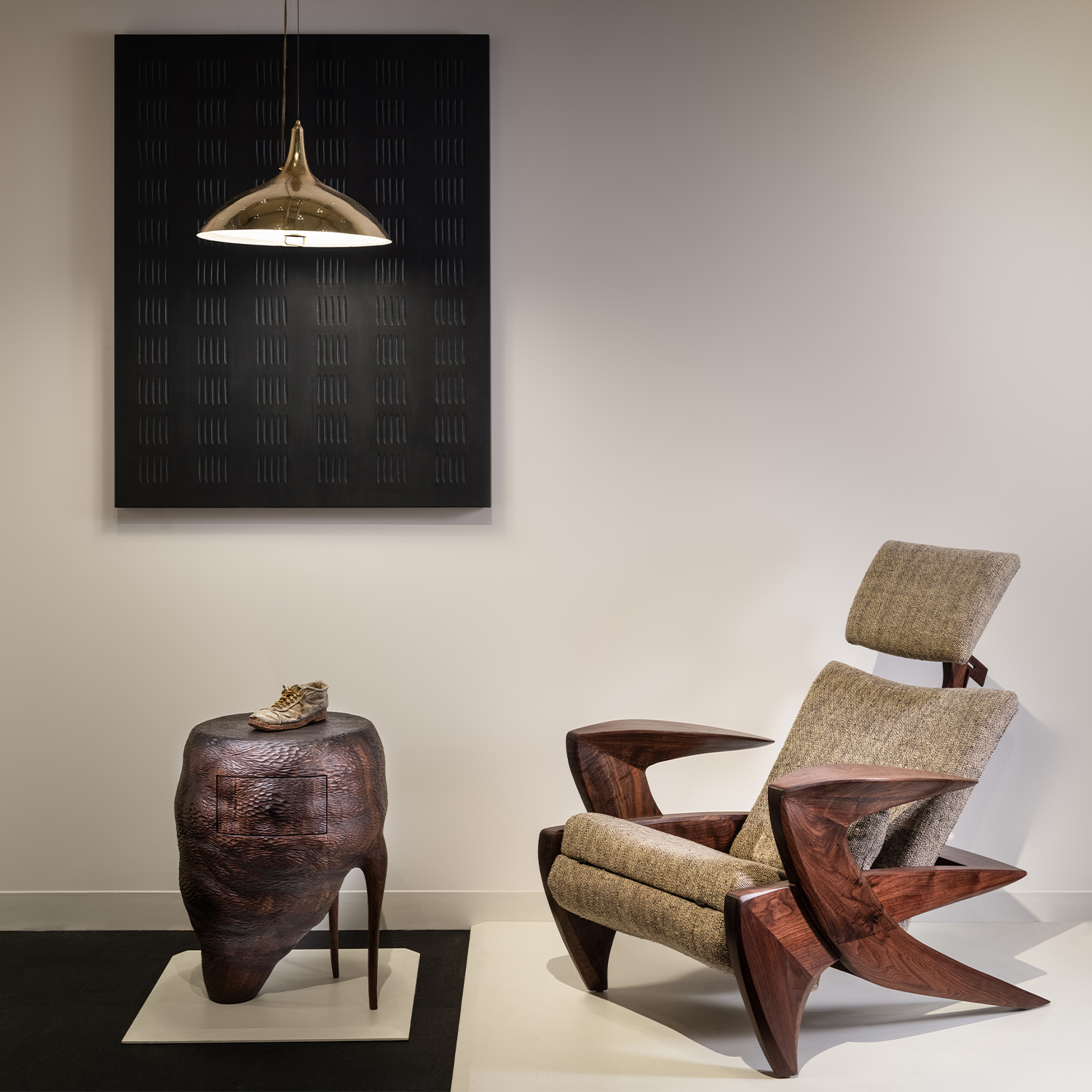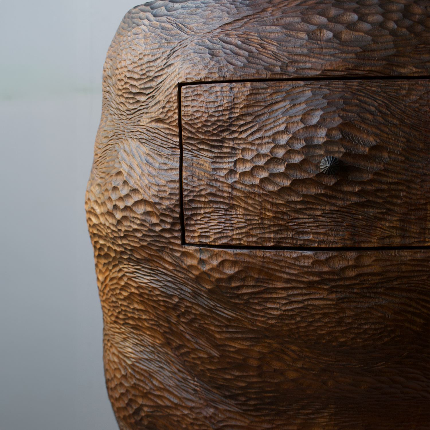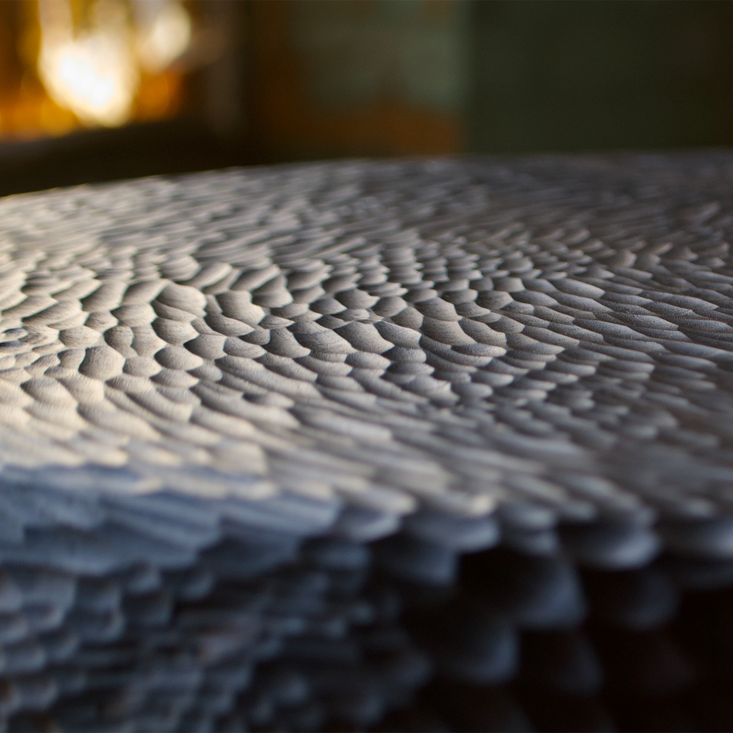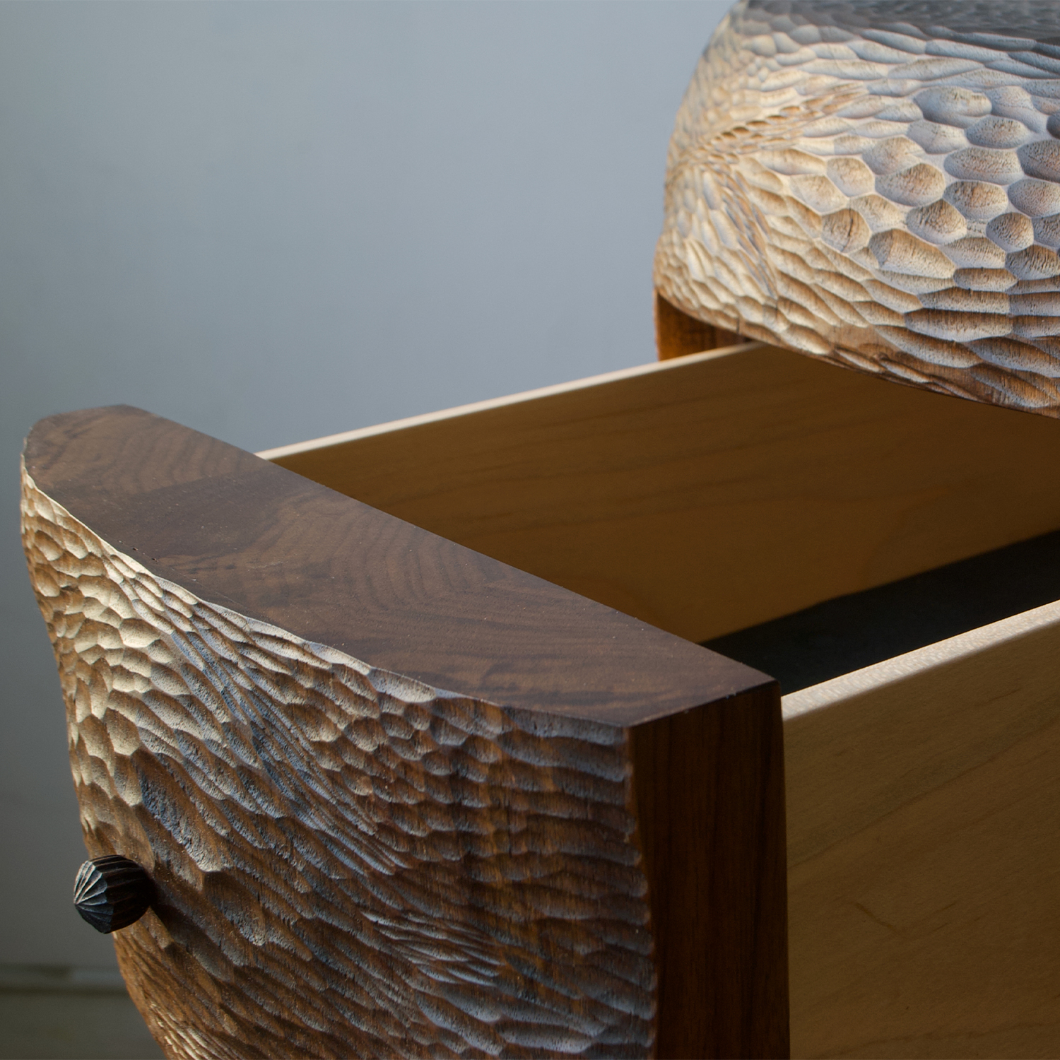 Philadelphia-based artist Ashley Martin is a contemporary craftsman and designer of home goods, furniture and sculptural objects. His process utilizes a combination of modern woodworking and traditional carving techniques. His use of hand tools creates subtle textures leaving each piece with a distinct handmade quality. Integrating sculpture with function, his designs evoke both natural and architectural forms.