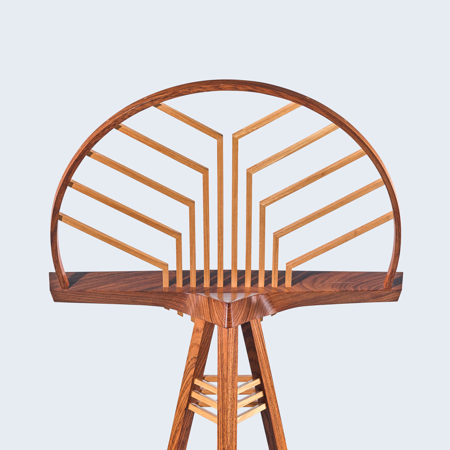 An excellent example of American studio furniture design blending geometry, craftsmanship, and visual rhythm.