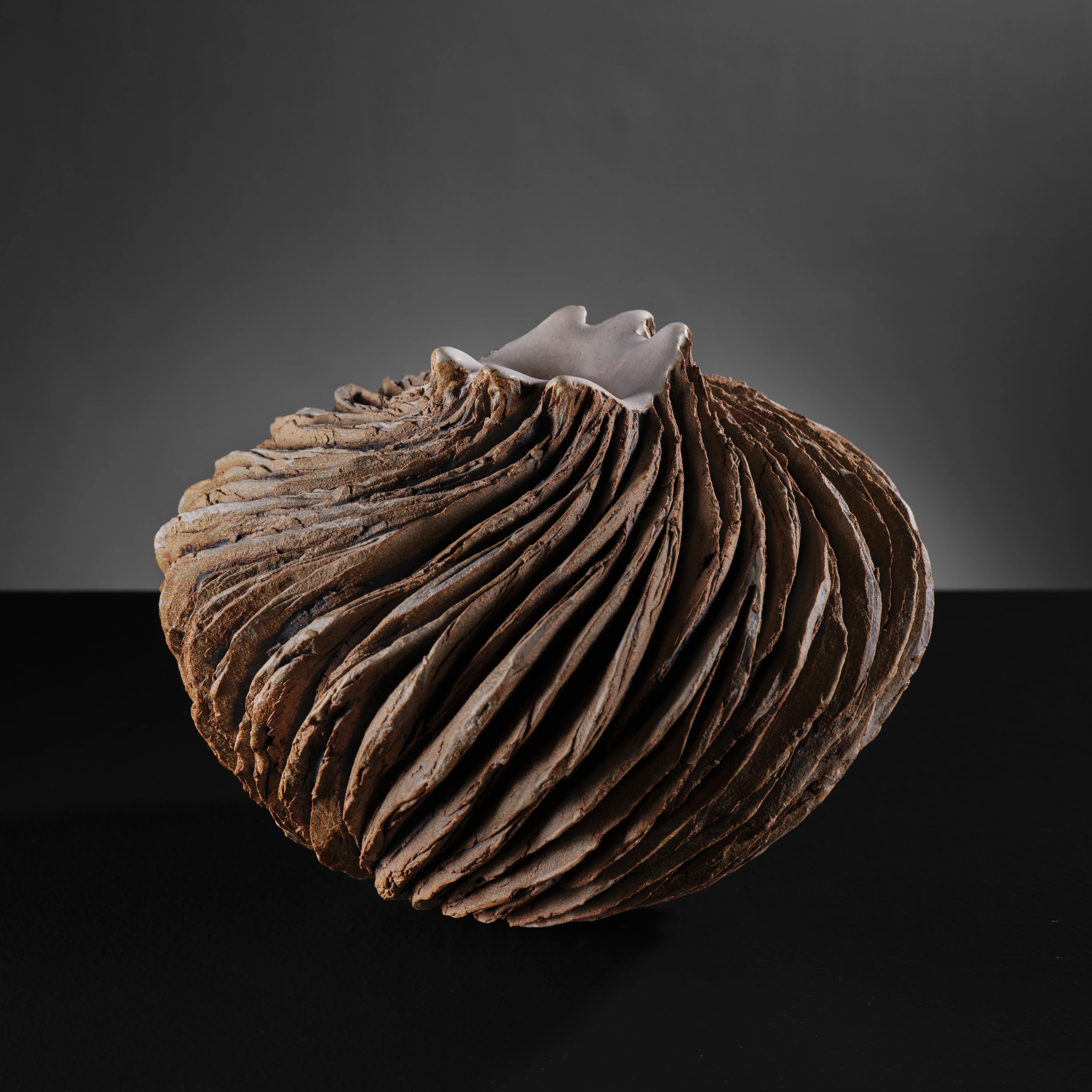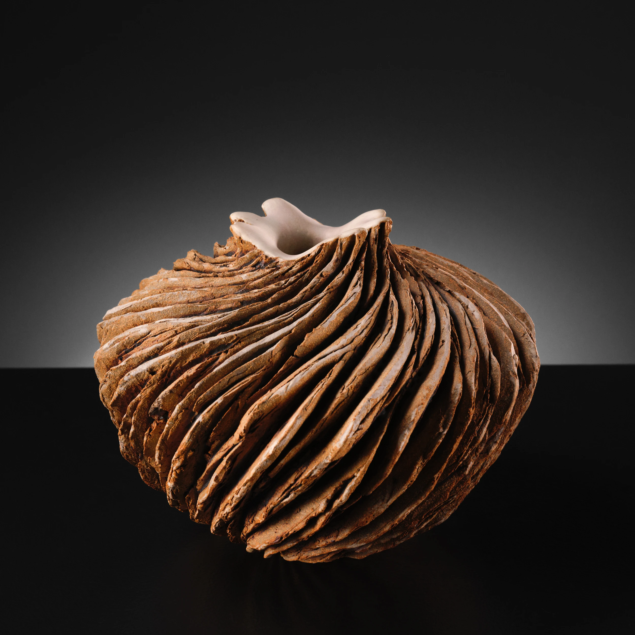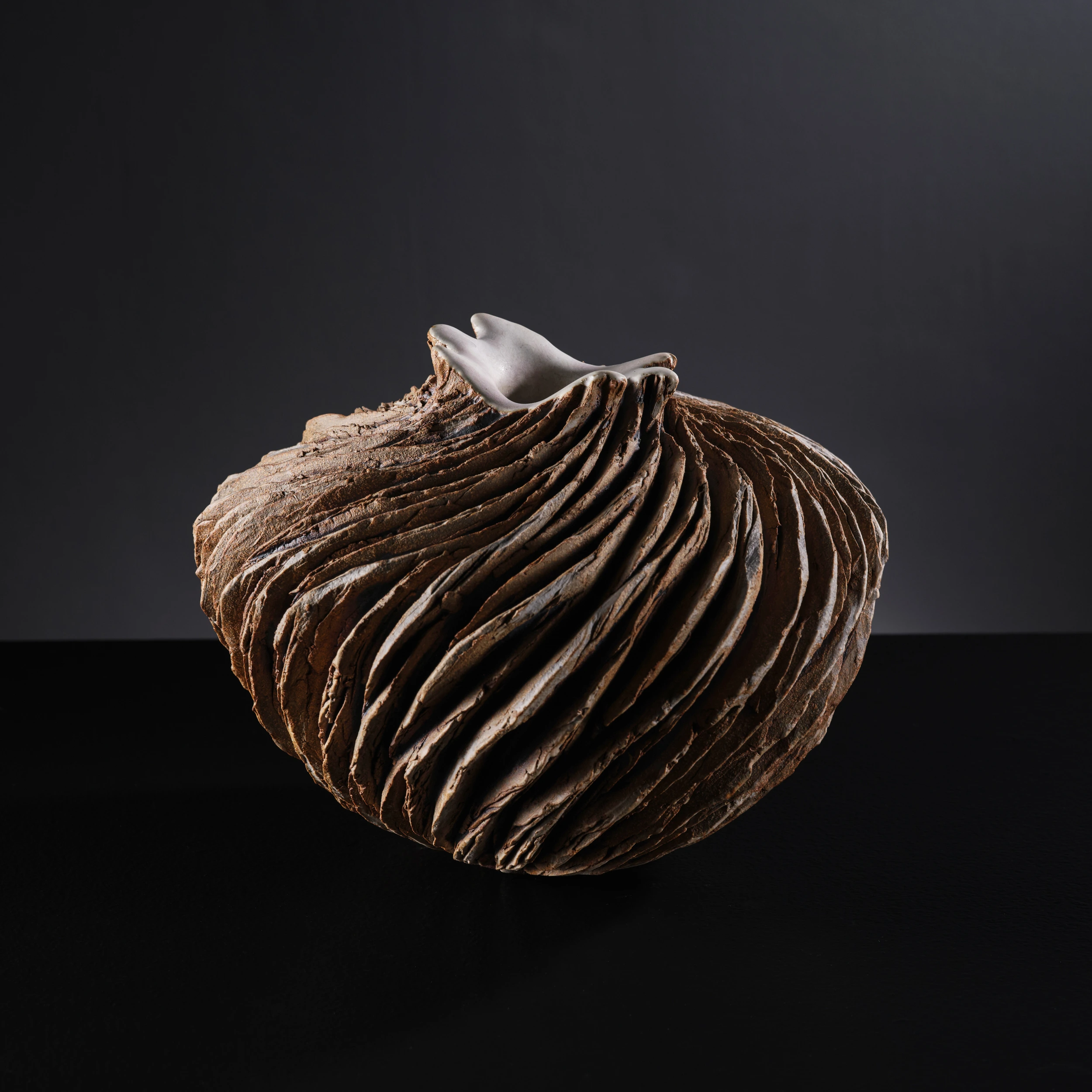 Carved and sculpted ceramic stoneware with porcelain slip and iron oxide