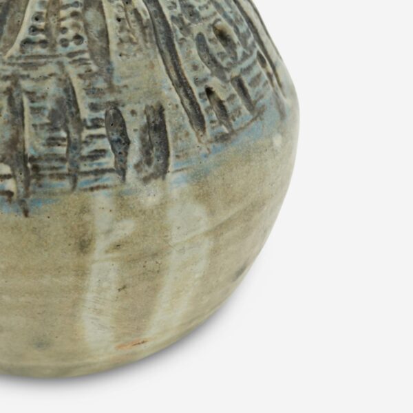 Halper initially took ceramic classes at Greenwich House Pottery in Manhattan in the early 1940’s, when she and her husband, Louis, lived on University Place in Greenwich Village. Prior to that she was an expert seamstress/embroiderer and taught sewing classes at the Singer Sewing Company in New York.
