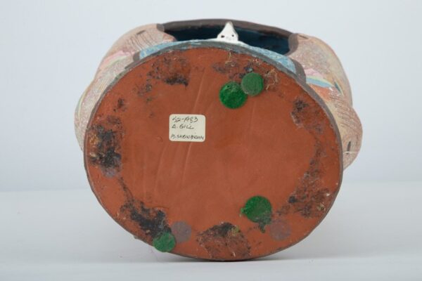 Artist Statement: My personal vision as an artist has focused on a format that is admittedly ancient: I am passionate about pottery form as a site for personal expression. I have no excuse for this arcane practice. I have little interest in the functional debate, although I recently allowed a florist to fill a vase with an outrageous arrangement. I choose to make vases and bowls because those forms allow the most open interpretation of shape without losing the iconic identity of the object. The scale of the vases, from two to six feet, gives me room to explore color, shape and pattern. The bowls provide a more intimate space where I have been exploring narrative ideas, recently involving mythology. My devotion to surface patterning has also proven to be an addiction that satisfies my love of stylized image and my firmly positive response to the word DECORATIVE. In the motifs of my overlaid figure/ground surfaces, I suspect I am often exploring my subconscious. The sources for the motifs range from my garden to doodles to texts of historical ornament, such as Owen Jones??? Grammar of Ornament. Ceramics is the ideal media to combine surface color and three-dimensional form. There is the affirmation of historic precedence of the painted pot, and the possibilities of current clay and glaze technology to support my vision. Biography: Andrea GillBorn 1948 in Newark, New Jersey, Andrea Gill is a ceramic artist and professor of ceramic art at the New York State College of Ceramics at Alfred University in Alfred, New York. Gill earned a BFA in painting from the Rhode Island School of Design in 1971, studied at the Kansas City Art Institute from 1972-73, and completed her MFA at the New York State College of Ceramics at Alfred University in 1976. She has been a resident at the Archie Bray Foundation and Anderson Ranch, and was awarded two Artist Fellowship Grants from the National Endowment for the Arts. Gill is considered one of the pioneers in the resurgence of decorative earthenware and maiolica glaze techniques. Her work is decorated, often employing hand-cut stencils, which generate stunning layers of color and glaze on clay vessels that allude to the history of ceramics, textiles, painting and ornament. Gill???s work is in several public collections, including the Renwick Gallery of the National Museum of American Art, Smithsonian Institution in Washington, DC, the Los Angeles County Museum of Art, and the Victoria and Albert Museum in London, England. Gill has been awarded fellowships from the New York Foundation for the Arts Fellowships, the National Endowment for the Arts, and an award from the Louis Comfort Tiffany foundation. She maintains a studio with her husband, John Gill, in Alfred, NY.
