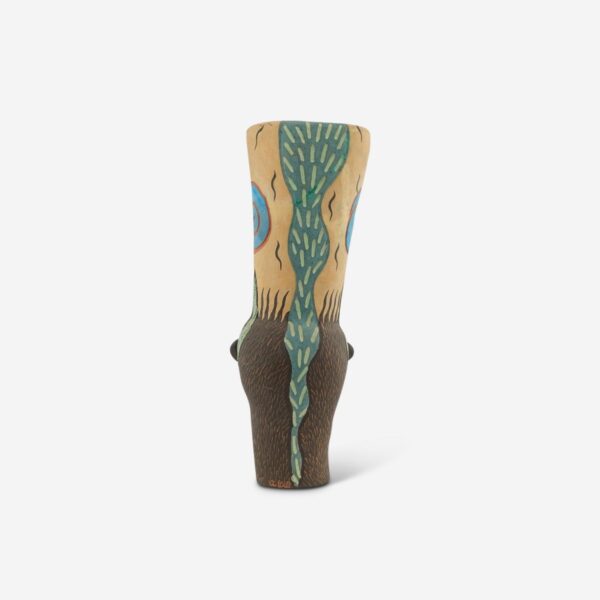 The scale of the vases, from two to six feet, gives me room to explore color, shape and pattern. The bowls provide a more intimate space where I have been exploring narrative ideas, recently involving mythology. My devotion to surface patterning has also proven to be an addiction that satisfies my love of stylized image and my firmly positive response to the word DECORATIVE. In the motifs of my overlaid figure/ground surfaces, I suspect I am often exploring my subconscious. The sources for the motifs range from my garden to doodles to texts of historical ornament, such as Owen Jones’ Grammar of Ornament.