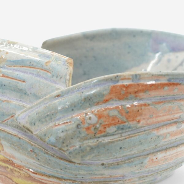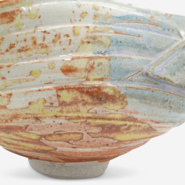 Makoto Yabe’s (1947-2005) work exemplifies the artistic freedom and improvisational approach that was essentially prohibited to him in Japan, where he was a classically trained ceramicist. In order to be free to experiment and explore the boundaries of his art, Yabe left for the US where he taught and worked for the rest of his life. He was born in Fukushima, Japan and began studying ceramics in Kyoto when he was 9.