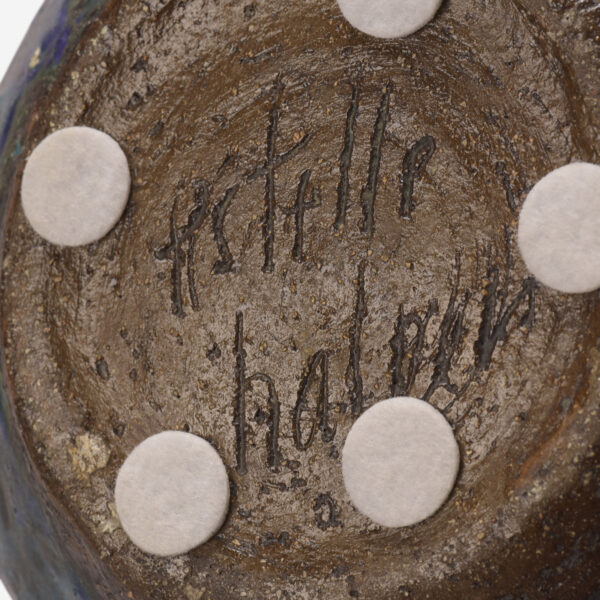 Halper initially took ceramic classes at Greenwich House Pottery in Manhattan in the early 1940’s, when she and her husband, Louis, lived on University Place in Greenwich Village. Prior to that she was an expert seamstress/embroiderer and taught sewing classes at the Singer Sewing Company in New York.