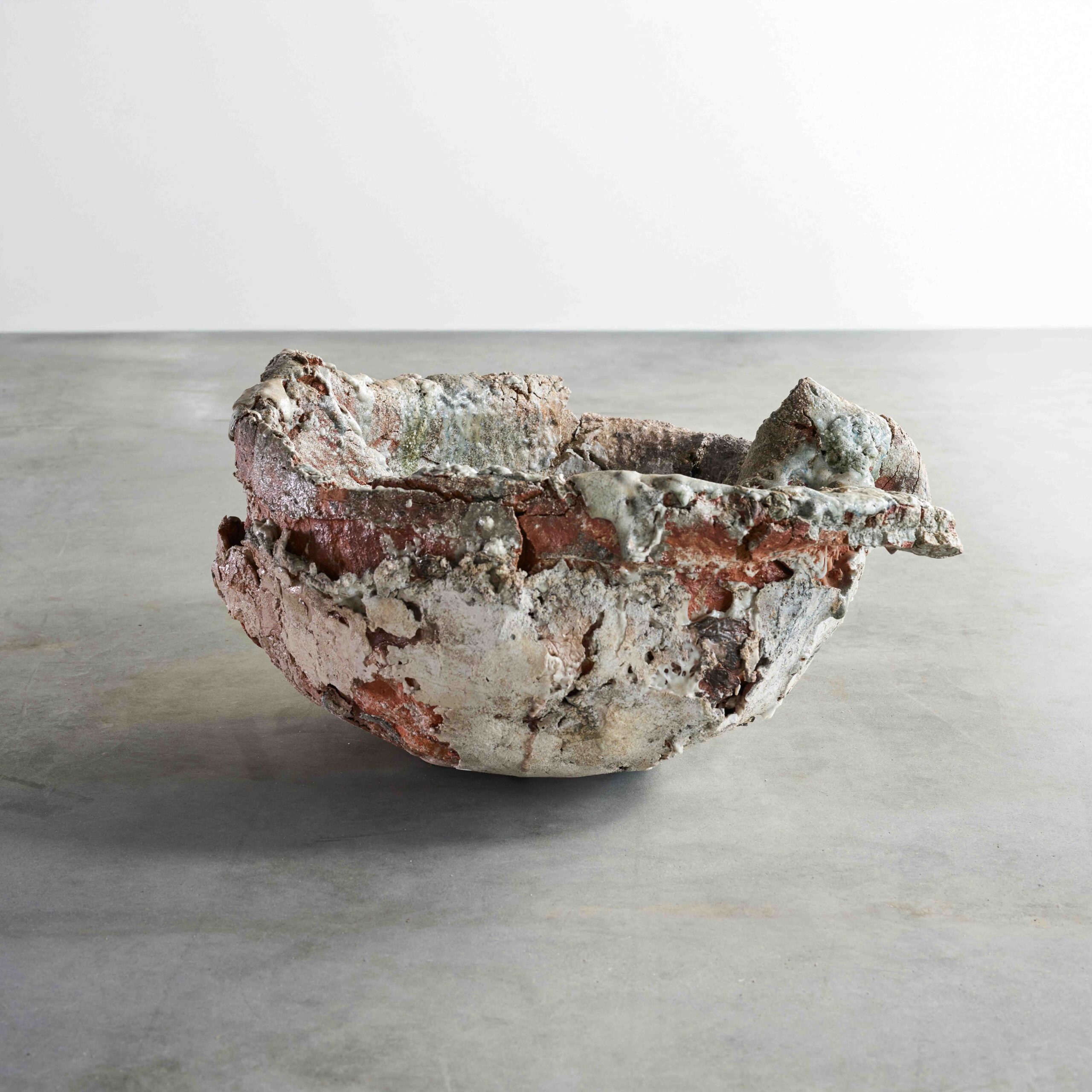 Through his experimentation with firing techniques, Ueda has created a unique process in which he employs whole blocks of Choseki feldspar or builds up irregular clay surfaces that can be fired in anagama kilns. Ueda plays with the infinite possibilities of his chosen medium. The surface of his sculptures blister, crack, and peel, like some kind of reptile shedding its skin. Ueda’s work can be read as a celebration of wabi-sabi (the acceptance of imperfection, impermanence, and the incomplete), and the storied history of ceramics.