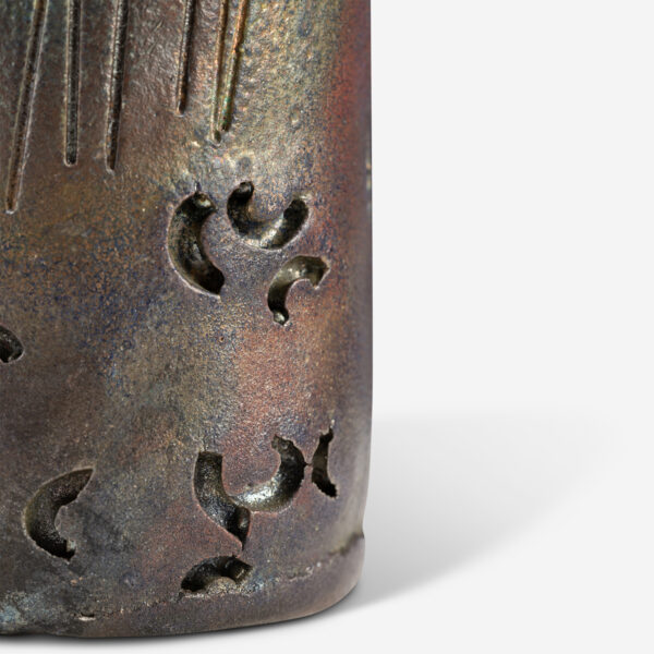 Makoto Yabe’s (1947-2005) work exemplifies the artistic freedom and improvisational approach that was essentially prohibited to him in Japan, where he was a classically trained ceramicist. In order to be free to experiment and explore the boundaries of his art, Yabe left for the US where he taught and worked for the rest of his life. He was born in Fukushima, Japan and began studying ceramics in Kyoto when he was 9.