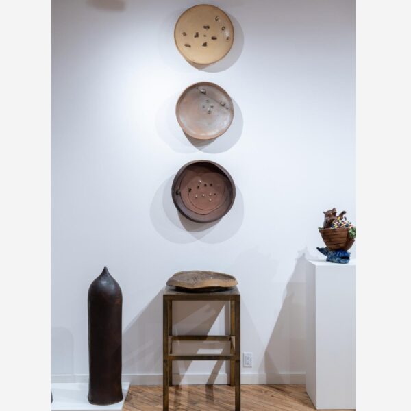 A great example of the innovative ceramic work of Peter Voulkos, a pioneering figure in contemporary ceramics. This ceramic charger, with its simple form and expressive qualities, stands as a testament to Voulkos’ understanding of the medium and his ability to push the boundaries of traditional ceramics.