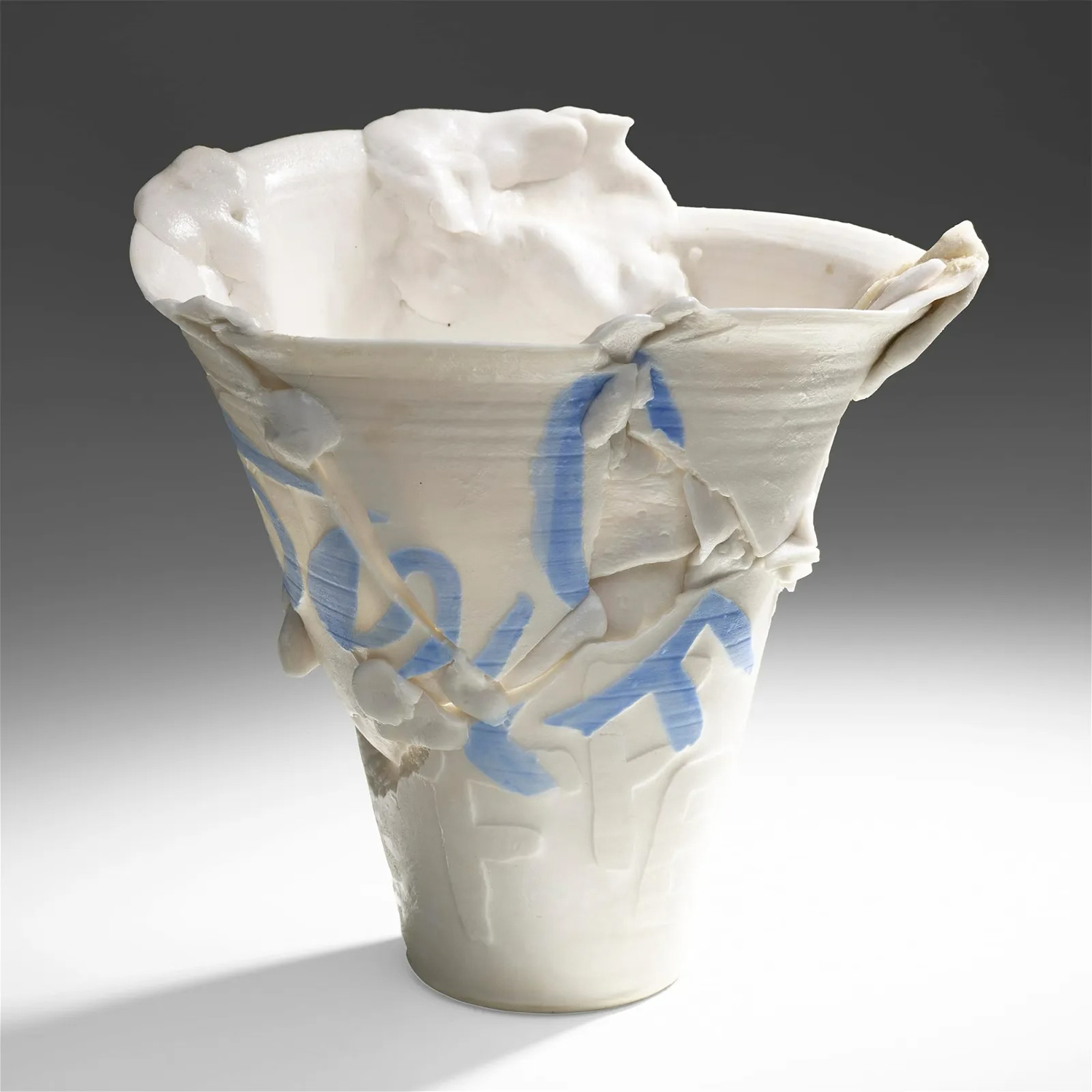 Rudolf Staffel is celebrated for his unique approach to porcelain. He pushed the boundaries of what was traditionally thought of as delicate and fragile in this medium. This vase, meticulously crafted by hand, showcases his nontraditional approach to working with porcelain. The result is a piece that is both elegant and rough in its natural form. Staffel deliberately introduced imperfections into the vase to emphasize the porcelain’s natural translucent quality, driven by his continuous fascination with light.