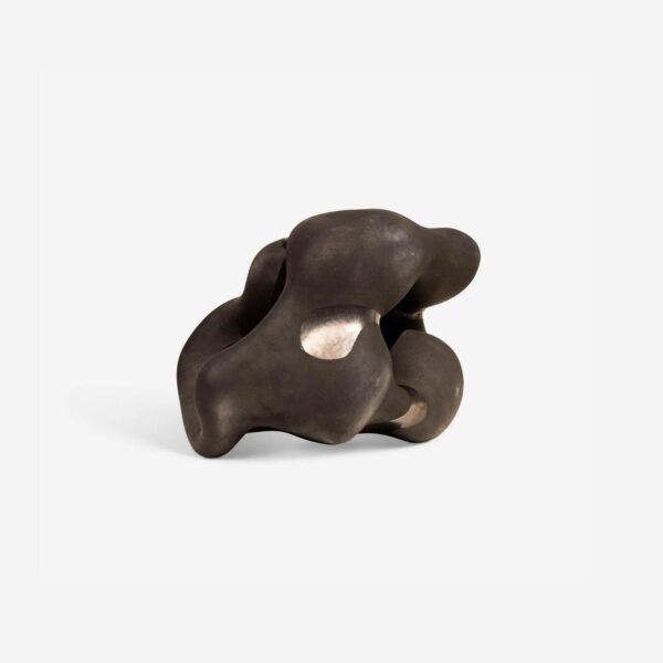 Carbon impregnated earthenware, coil-built, burnished, and reduction-fired in wood kiln.