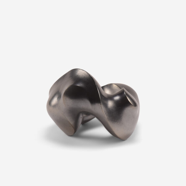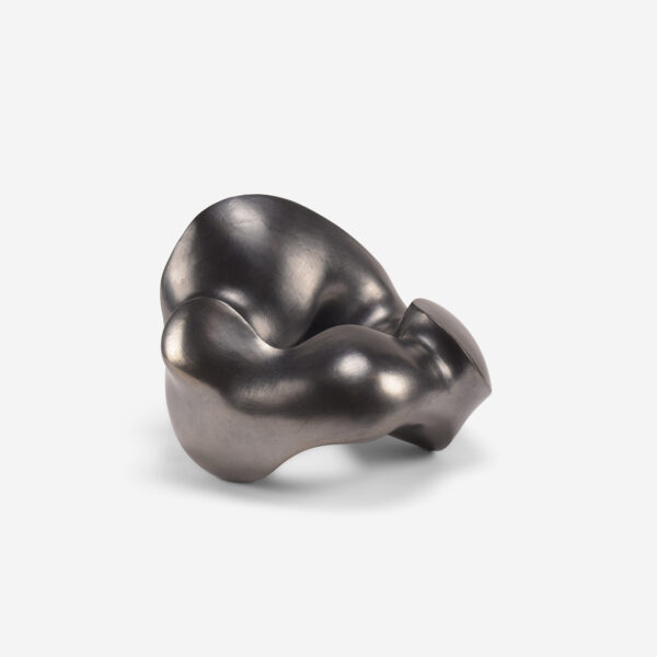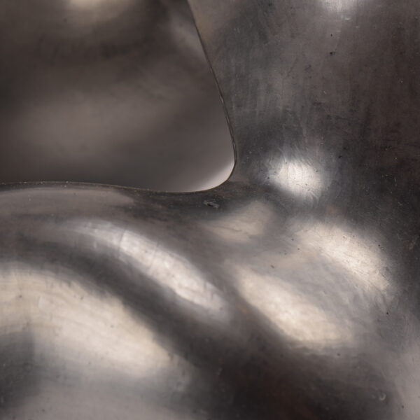 Carbon impregnated earthenware, coil-built, burnished, and reduction-fired in wood kiln.