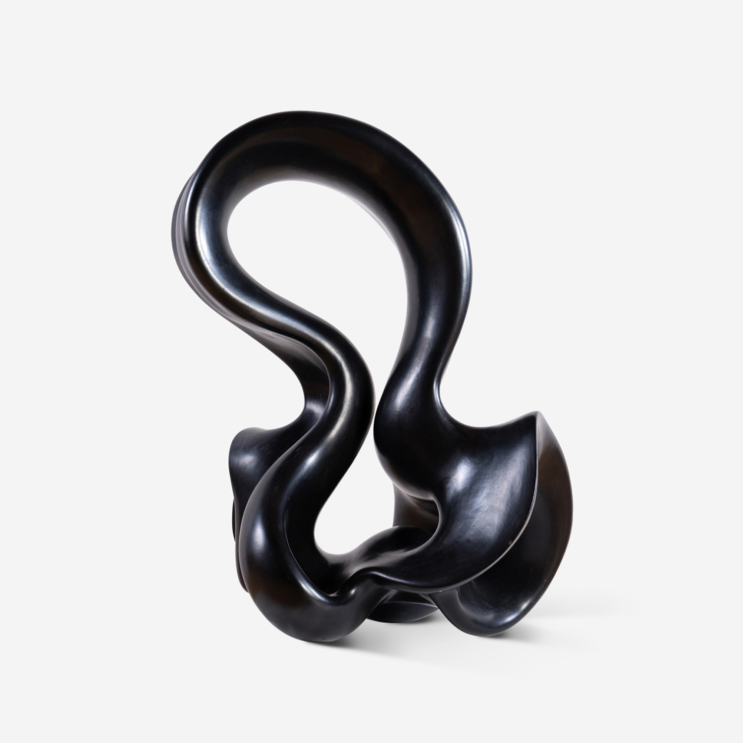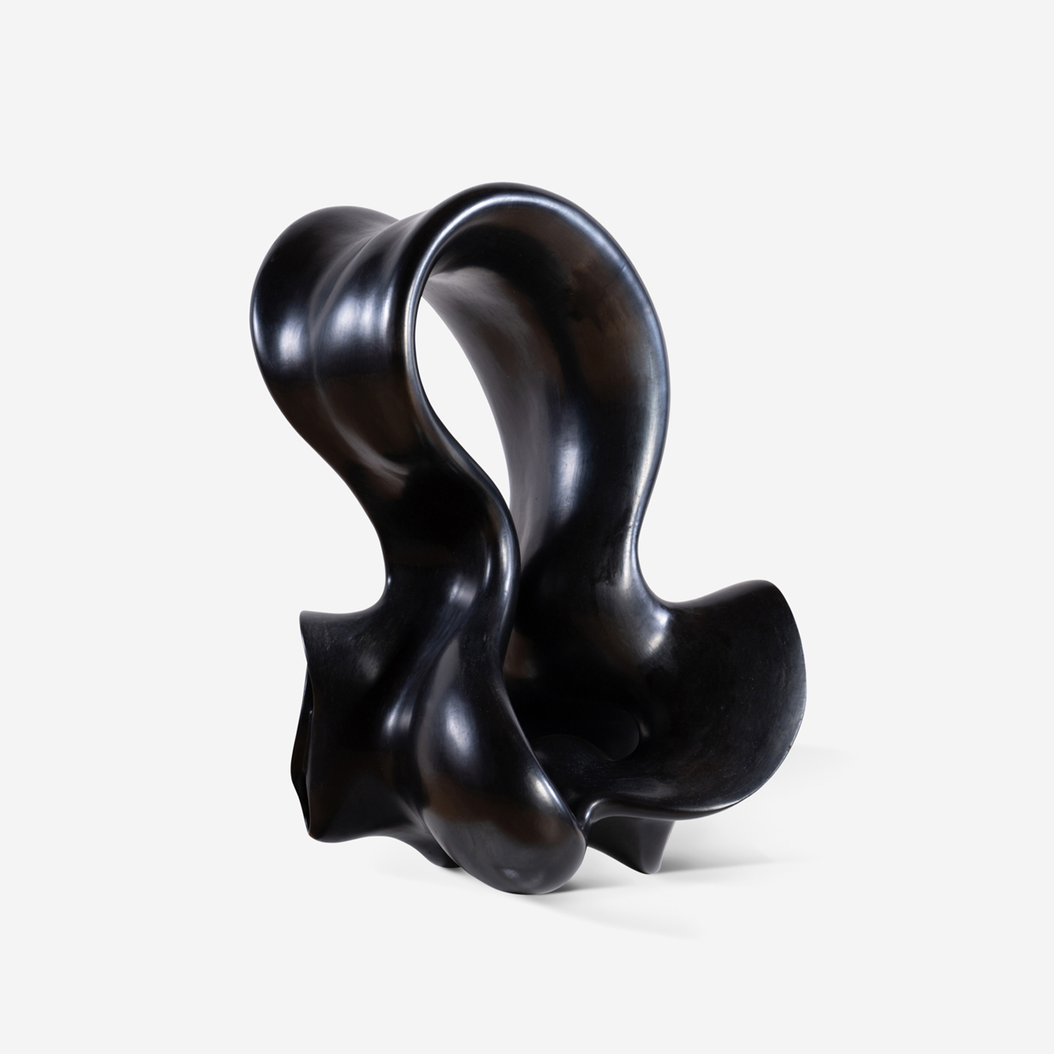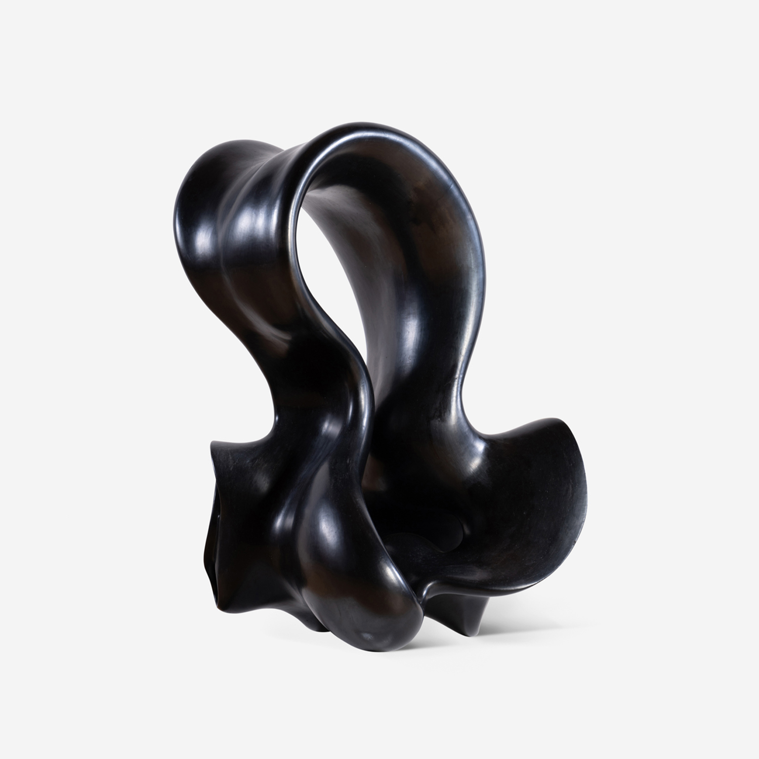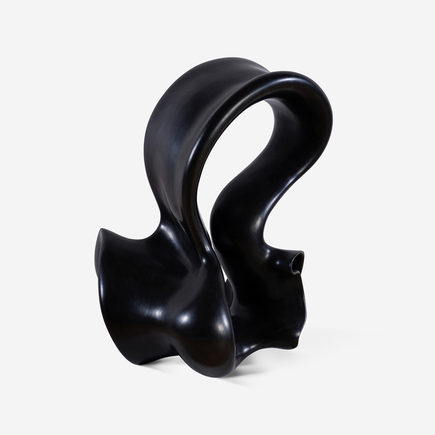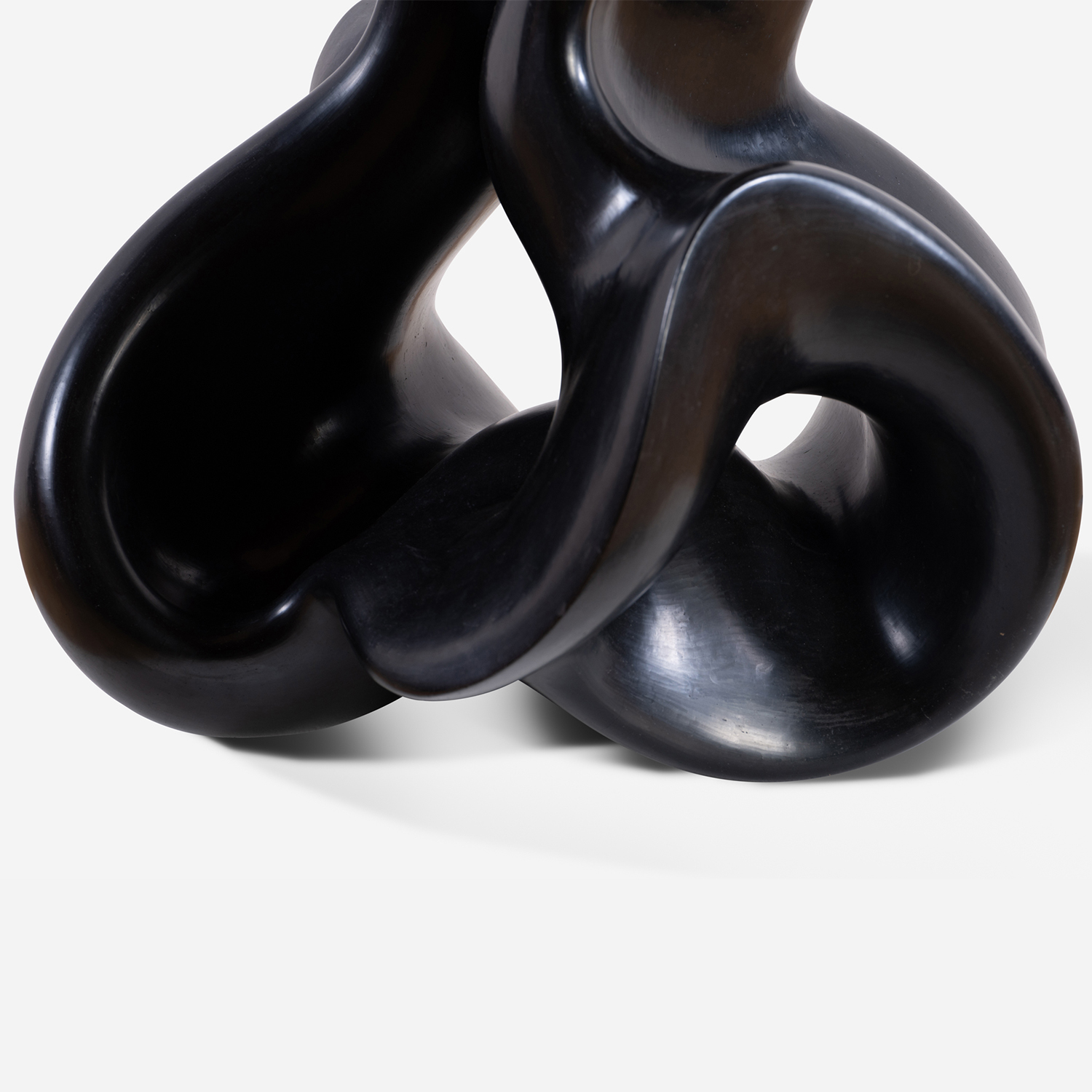 Carbon impregnated earthenware, coil-built, burnished, and reduction-fired in wood kiln