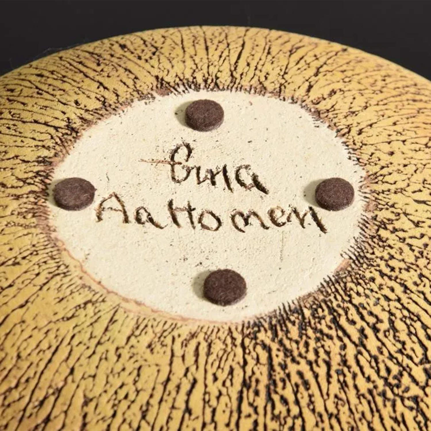 Erna Aaltonen crafts her distinctive ceramic vessels with a sophisticated method, where thin, ribbon-like strips of clay are meticulously joined. The vessels’ circular and sculptural forms are integral to her artistic expression.