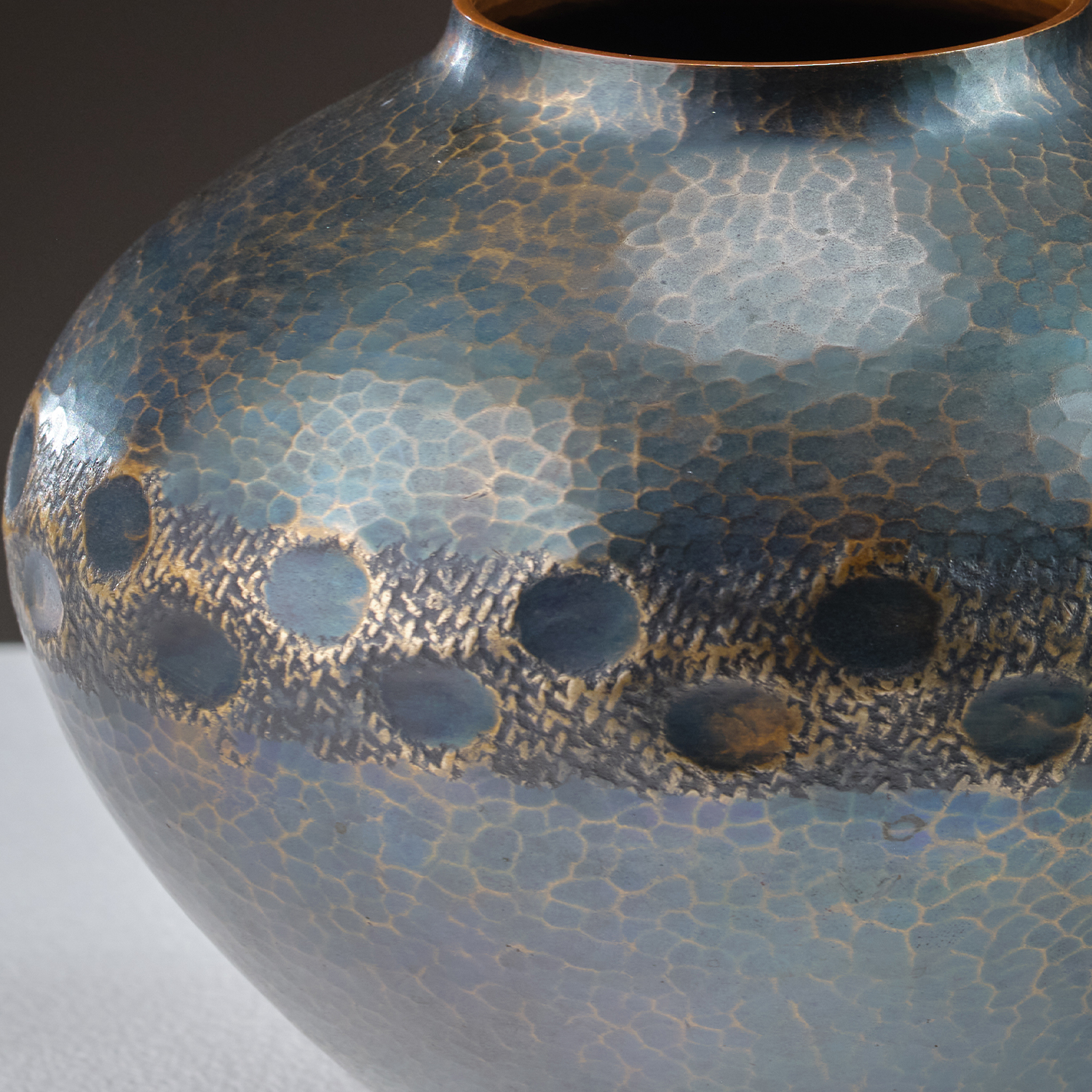 Gyokusendo Tsuiki Copperware is a traditional Japanese craft with a history that dates back over 200 years. It originates from Tsubame City in Niigata Prefecture, Japan. The name "Gyokusendo" comes from a combination of two words: "gyoku" meaning "jewel" and "sendo" meaning "copper mountain." The term "tsuiki" refers to the technique of hammering and shaping metal, specifically copper, into various forms and designs. Gyokusendo copperware is known for its intricate and delicate designs, achieved through a combination of traditional craftsmanship and artistic creativity. Artisans use tsuiki, a hand-hammering technique, to shape the copper into various forms, such as vases, tea kettles, trays, and other decorative items. The process involves repeatedly heating and hammering the copper to achieve the desired shape and thickness.