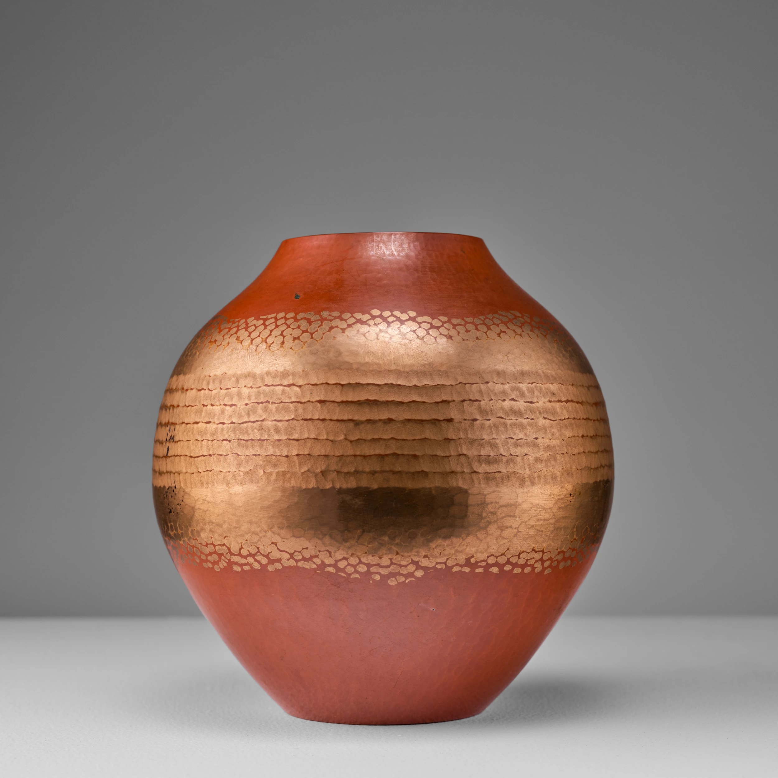 The surface, referred to as “Hammer Mark Mosaic” shows the individual marks left behind by the hundreds of hammer strikes needed for shaping the vessel. Creating a texture, that cannot be replicated.
